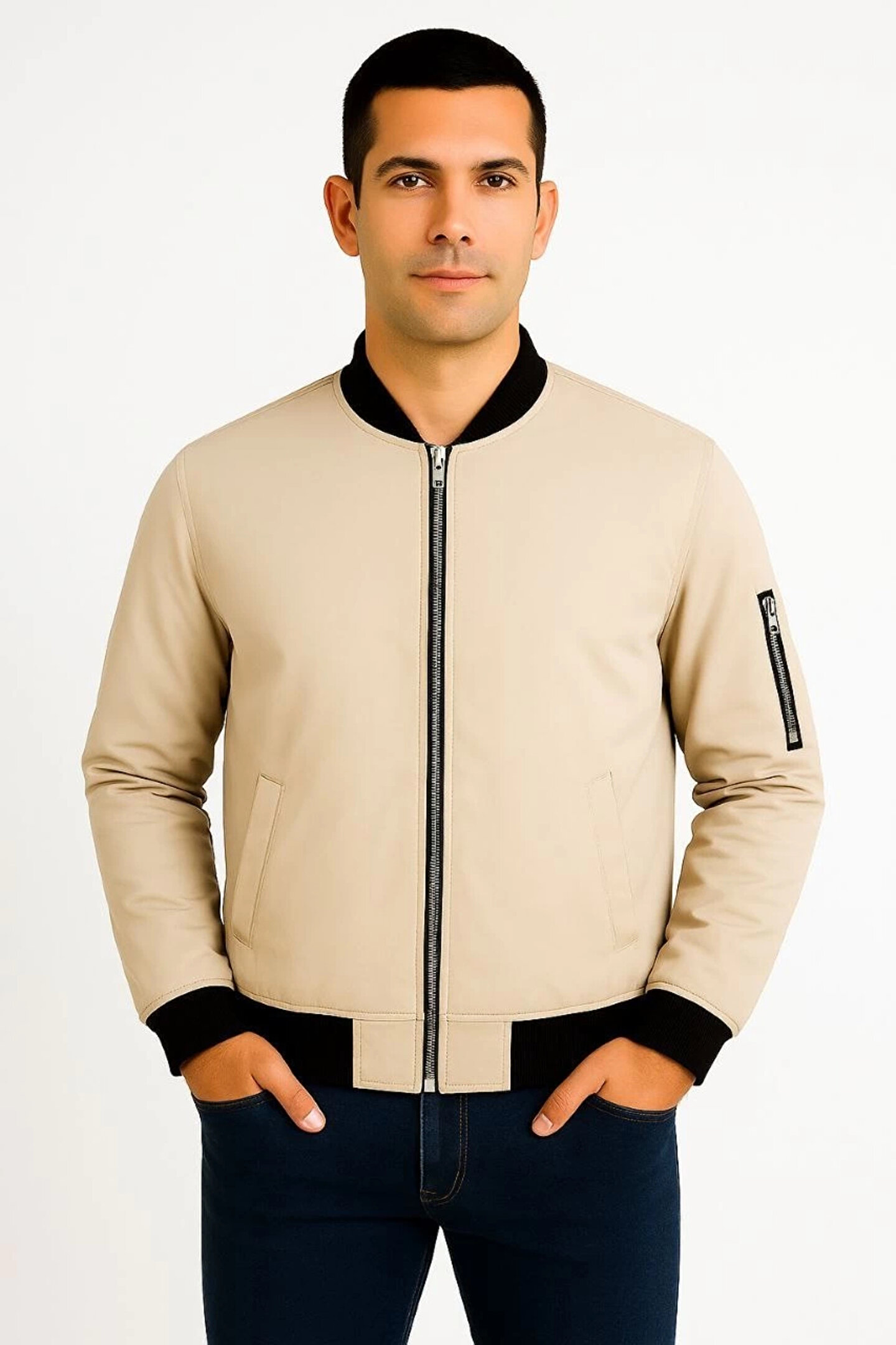 MODA Erkek içi Astarlı Fermuarlı Bomber Mont Ceket - Bej