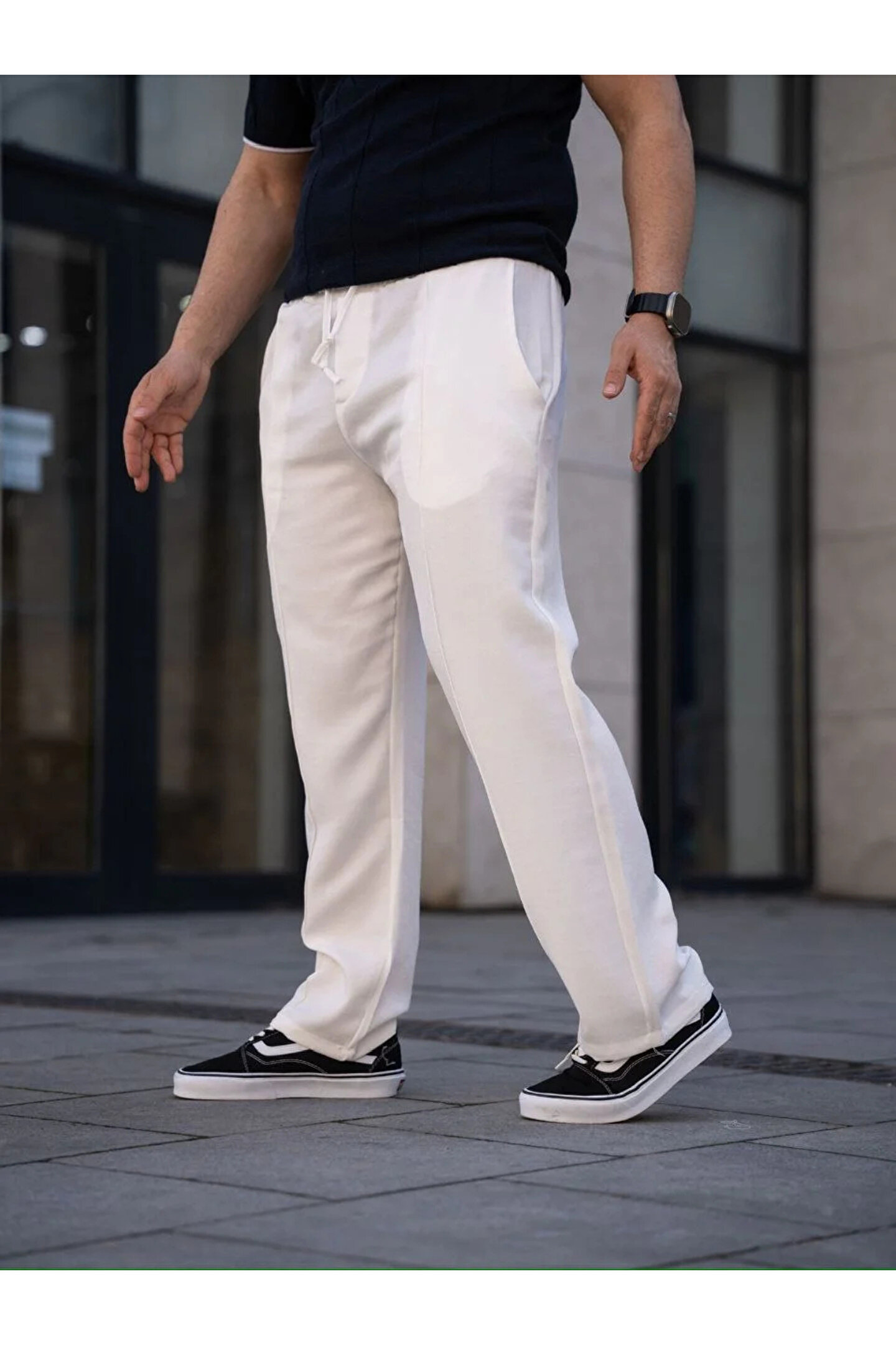 MODA Erkek Keten Cepli Çıma Dikişli jogger Buggy Pantalon Rahat kalıp - Beyaz