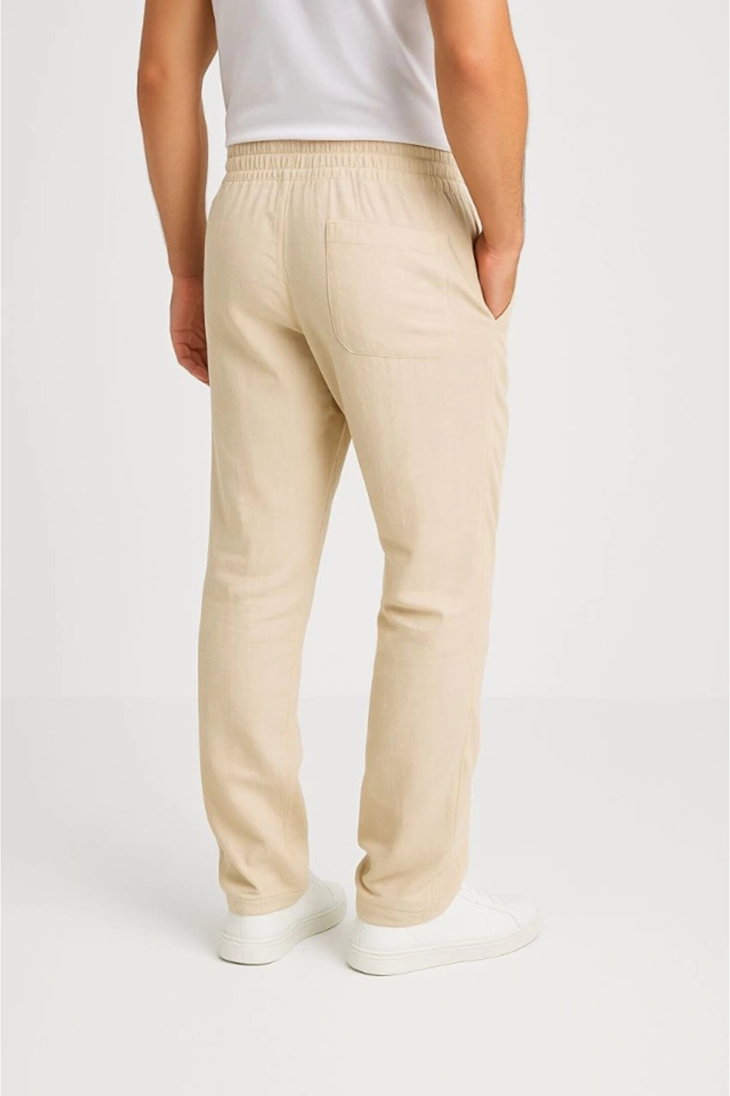 MODA Erkek Keten Pantolon – Cepli, Beli Lastikli Ve Bağcıklı, Nefes Alan Rahat Kalıp, Yazlık Ve Baharlık