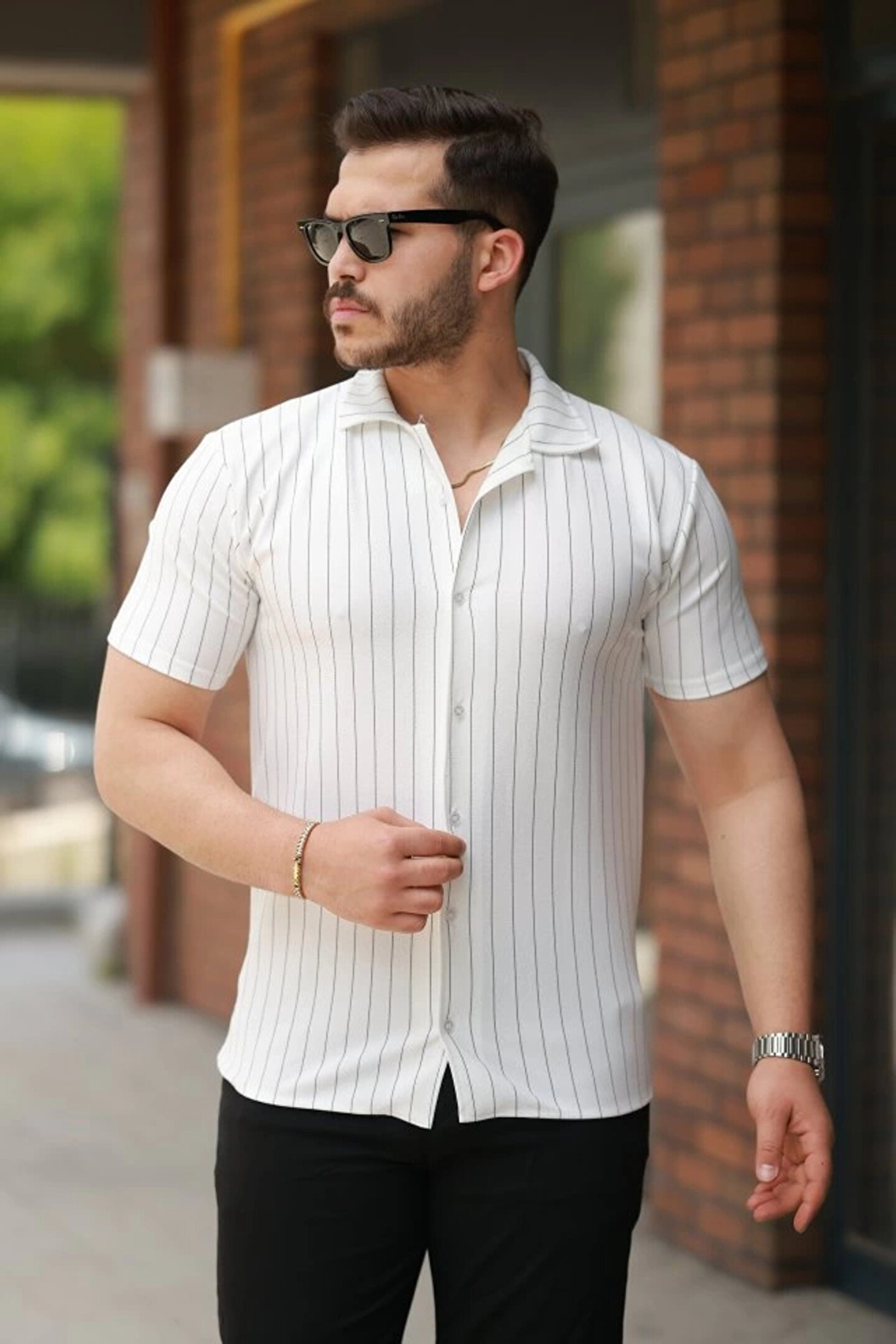MODA Erkek Kısa Kollu çizgili Gömlek