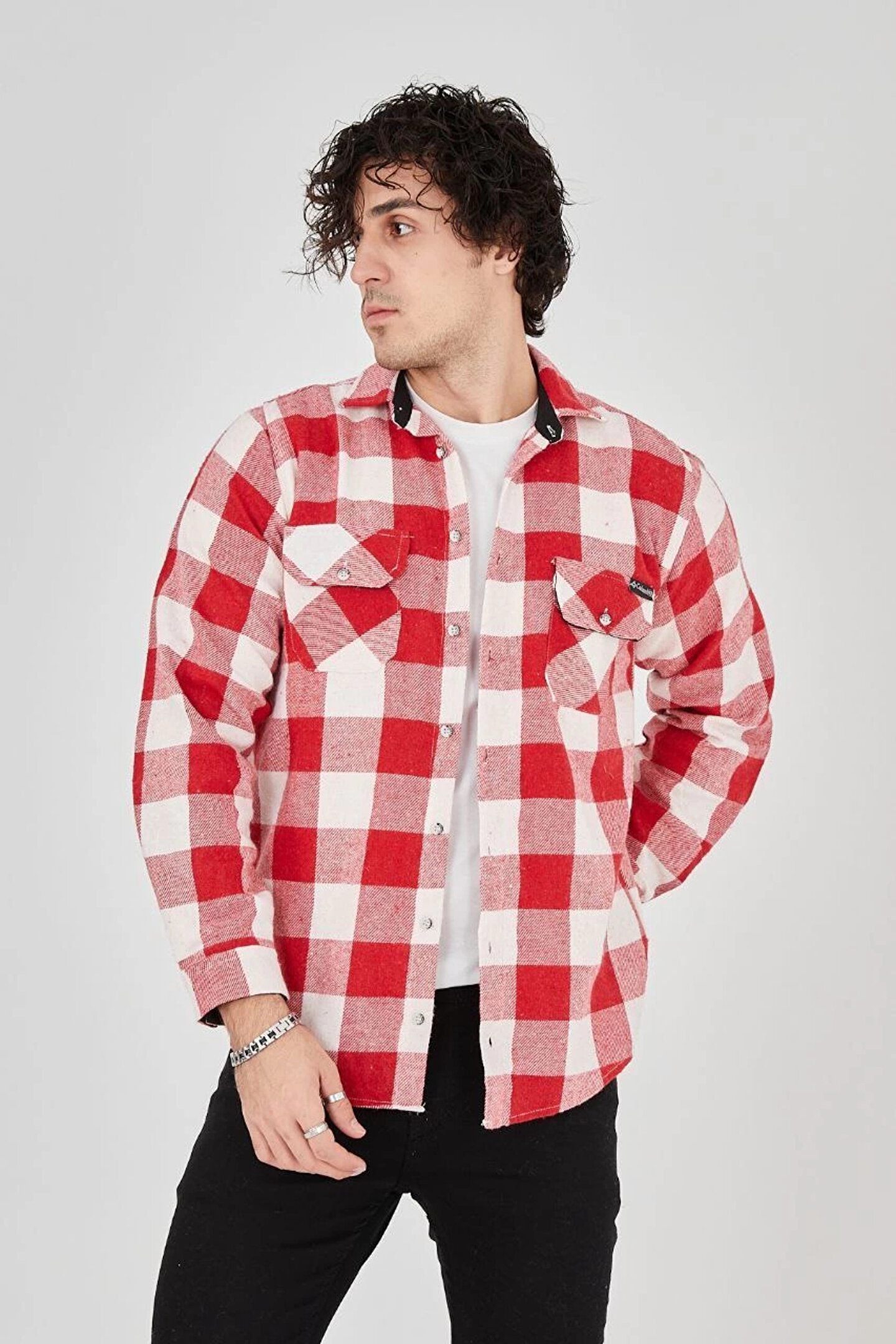 MODA Erkek Oduncu Gömlek – Uzun Kollu, Şardonlu Kumaş, Kareli Desen, Regular Fit, Manşetli, Çift Cepli, R