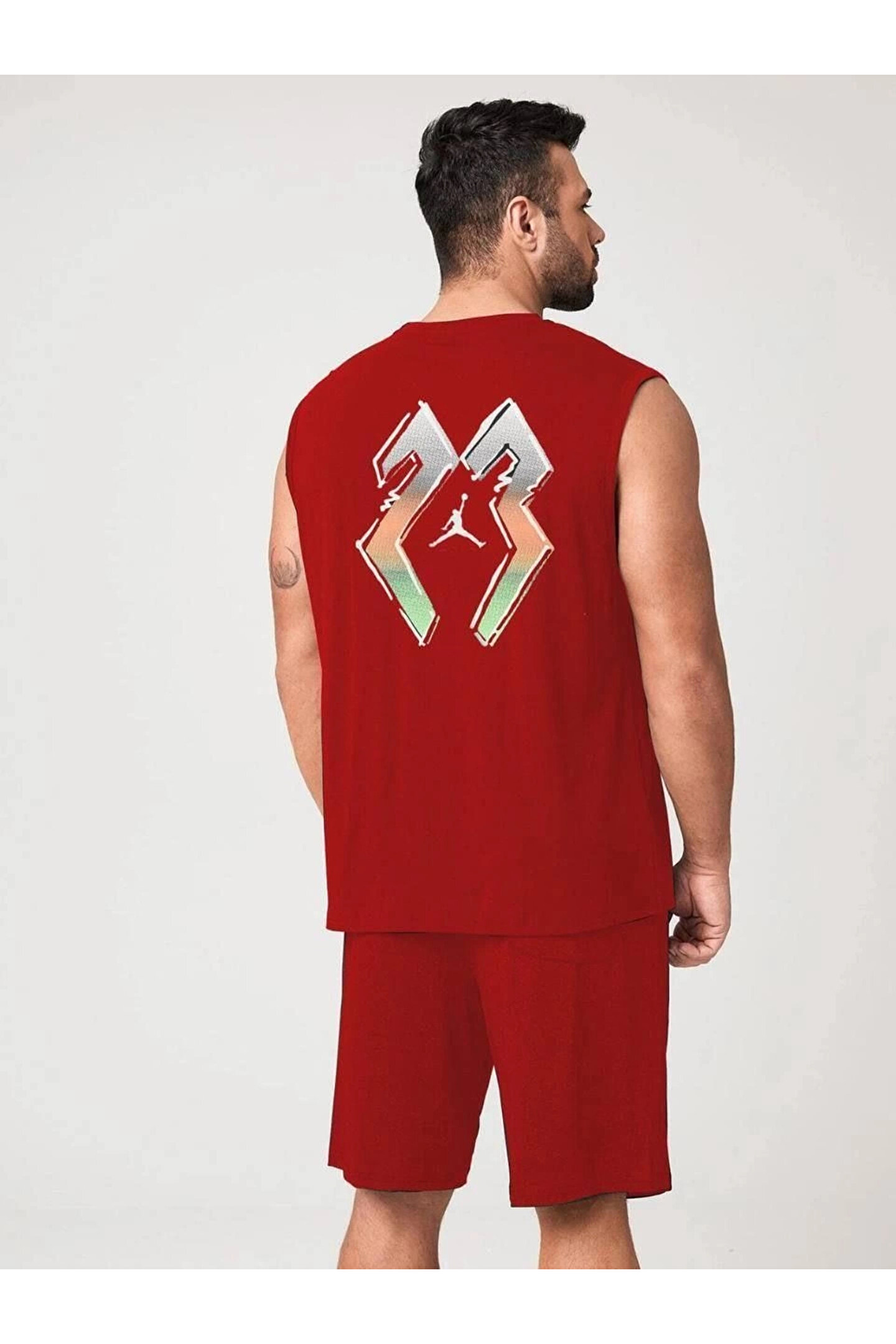 MODA Erkek Sırt Baskılı Sıfır Kol İkili Şort Takım - Kırmızı