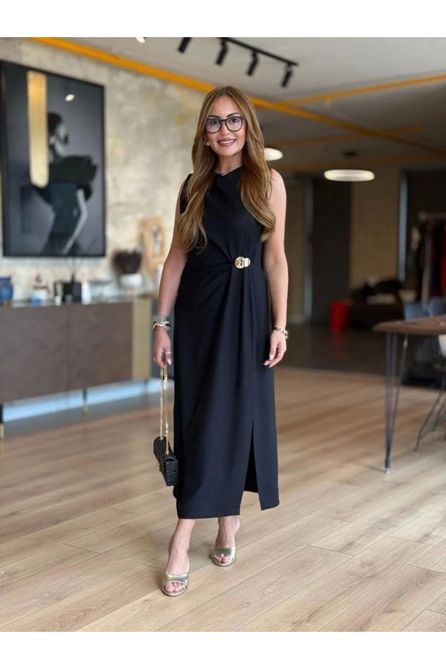 - Orta kalınlıkta krep kumaştan üretilmiş, yaz aylarında serin tutan bir yapıya sahiptir.; - Slim silueti ile vücut hatlarınıza mükemmel uyum sağlayarak feminen bir görünüm sunar.; - Kemersiz tasarımı sayesinde rahatlıkla giyilip çıkarılabilir ve farklı stiller oluşturmanıza olanak tanır.; - Sürdürülebilir malzemeler kullanılarak üretilmiştir; çevre dostu bir tercih yapmış olursunuz.; - Cepsiz yapısıyla minimalist bir şıklık arayanların beğenisini kazanır.; - Baskısız deseniyle sade ve zarif bir tarz yaratmanızı sağlar.; - Zarif koleksiyonun parçası olarak, özel günlerde veya gece davetlerinde göz alıcı bir stil sunar.; - Kısa boyu ile modern ve dinamik bir duruş sergilerken, yetişkin yaş grubuna hitap eder.; - TR menşeli olması yerel üretimden gelen kaliteyi yansıtırken, özenli işçiliğin de altını çizer.; - Örme dokumasıyla esneklik kazandırarak hareket özgürlüğünüzü arttırır.; - Büzgü detayları bel bölgesini daha ince göstererek feminen çizgilere vurgu yapar.; -Yırtmaç detayları trendleri yakalar- Kısa kol boyu yaz sıcaklarında konforlu kullanım imkanı tanırken, kolsuz tasarım omuzları ön plana çıkartır.; - Krep materyali hafifliğiyle gün boyu rahat etmenizi sağlarken, düz deseniyle kombin yapmayı kolaylaştırır.;