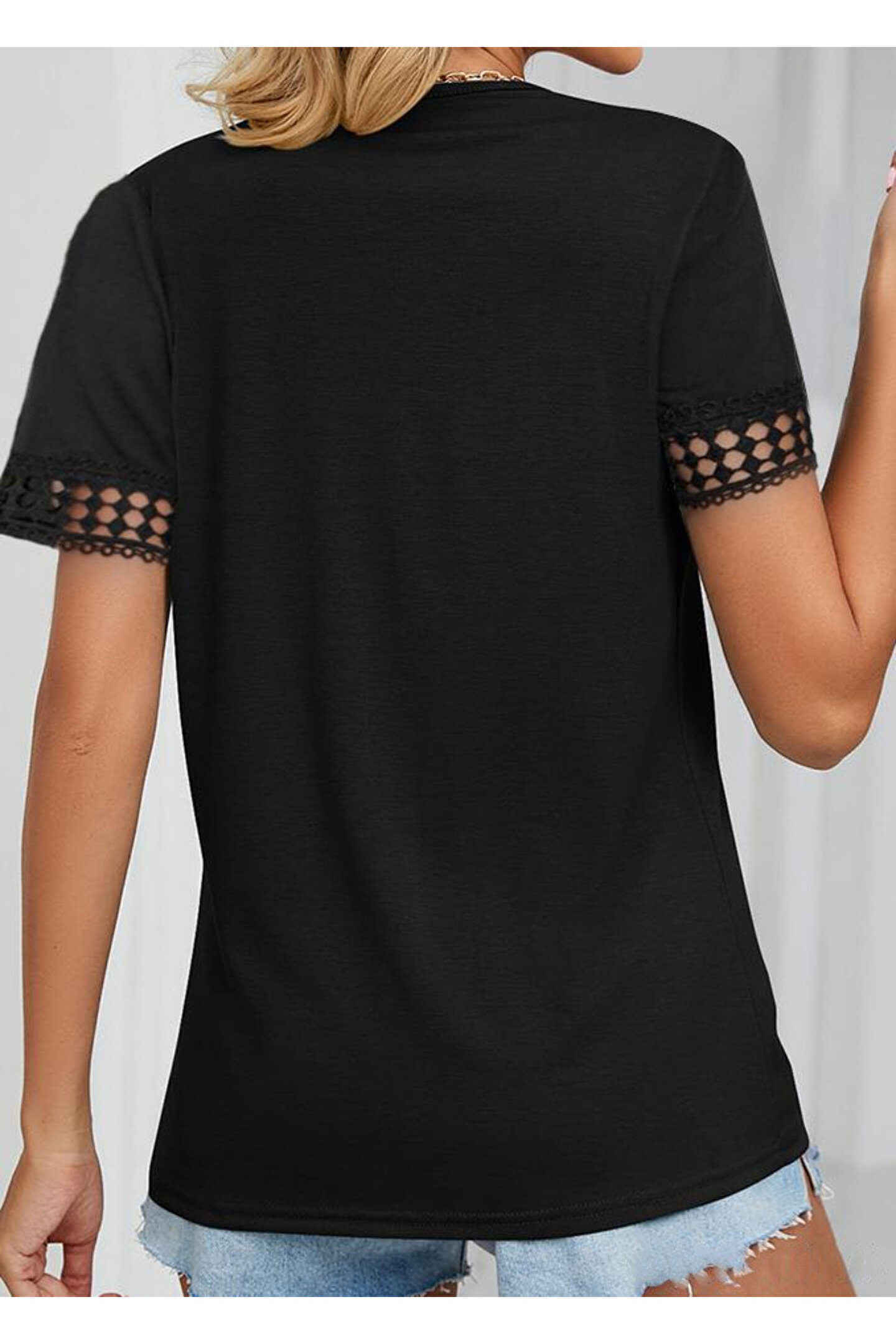 Kadın Kısa Kollu V Yaka Dantel Yakalı Viskon Bluz