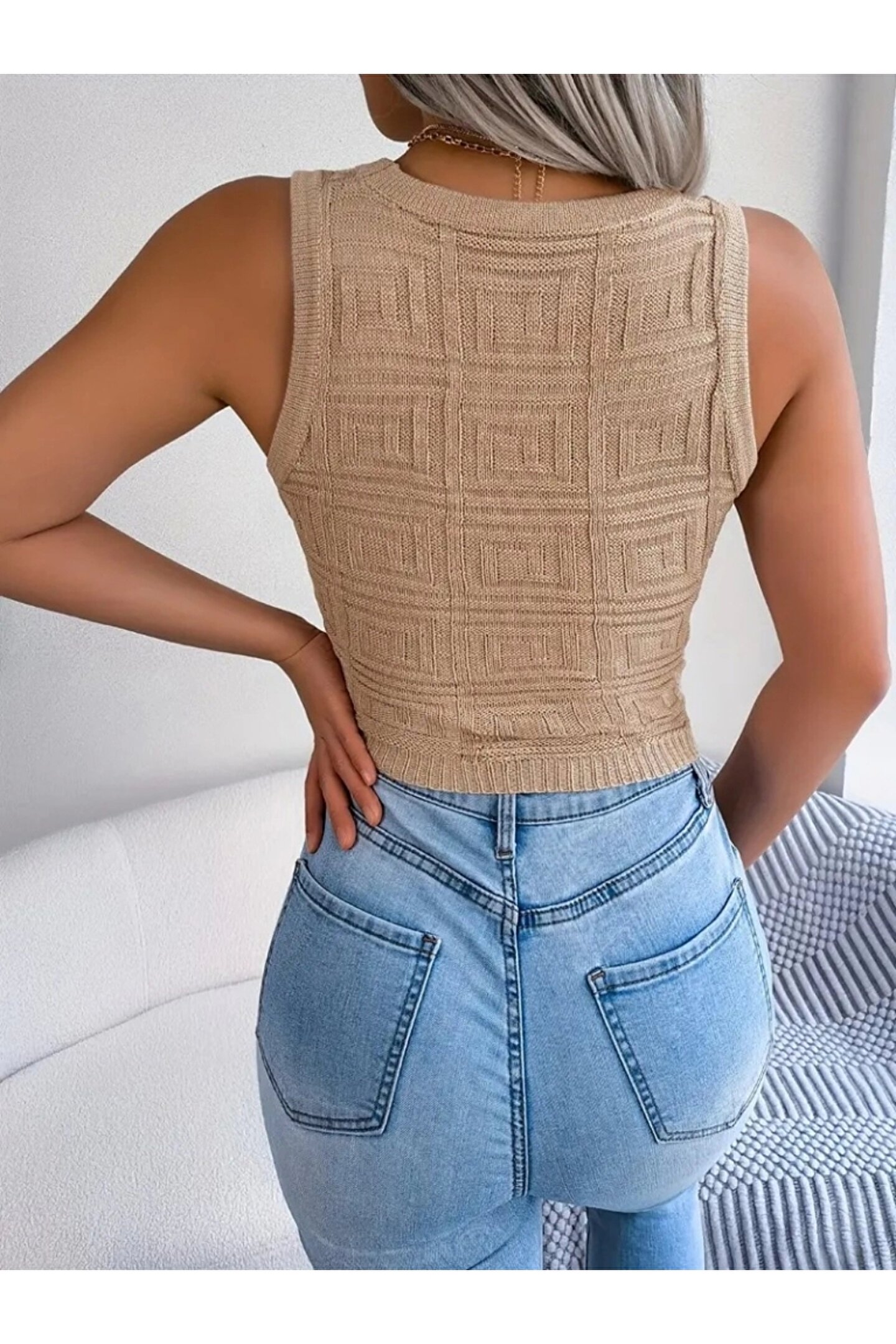 Kadın Kolsuz Bisiklet Yaka Güpüs Dekolteli Triko Crop Bluz