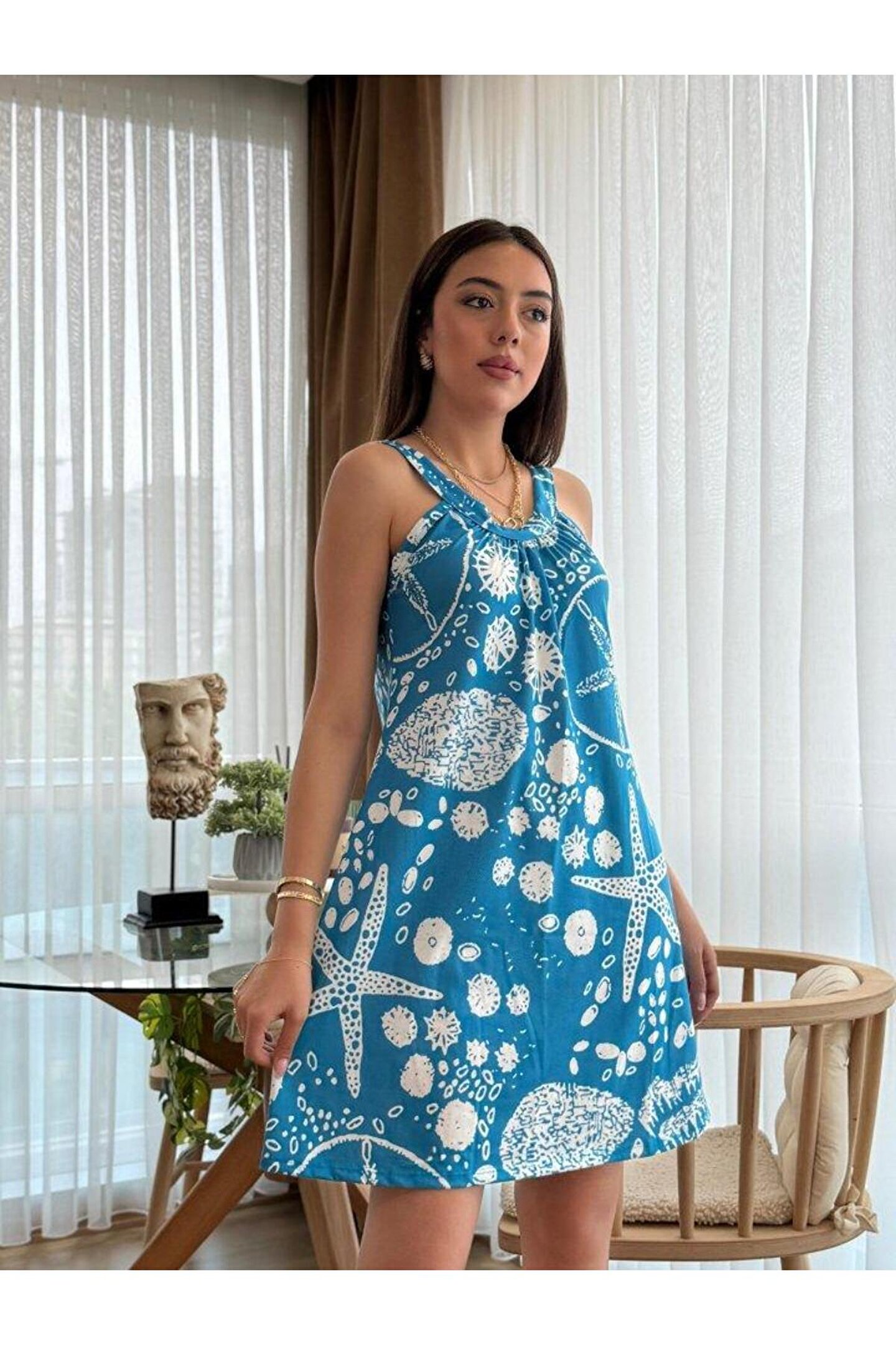 Kadın Askılı Deniz Yıldızı Desenli Süprem Elbise