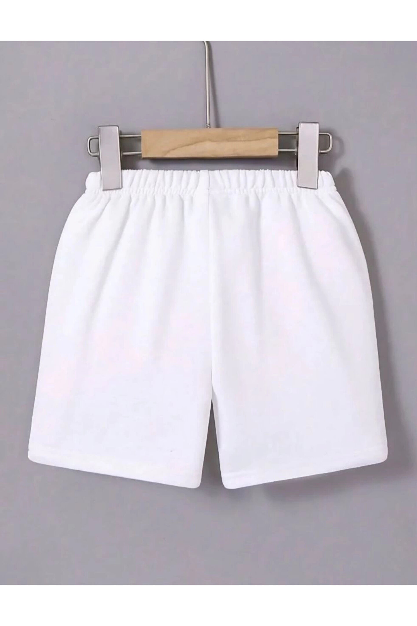Kadın Beli Lastikli Baskılı Mini Şort - Beyaz