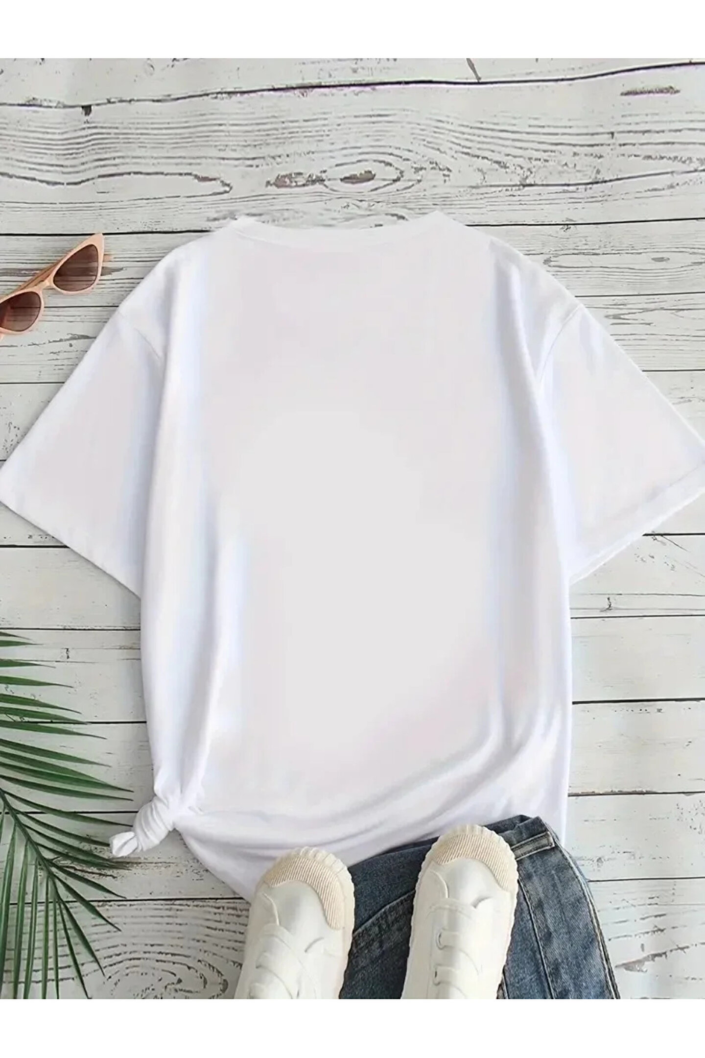 MODA Kadın Beyaz Ive Got Your Back Grafik Tişört - Eğlenceli Çubuk Tasarımlı Oversize Günlük