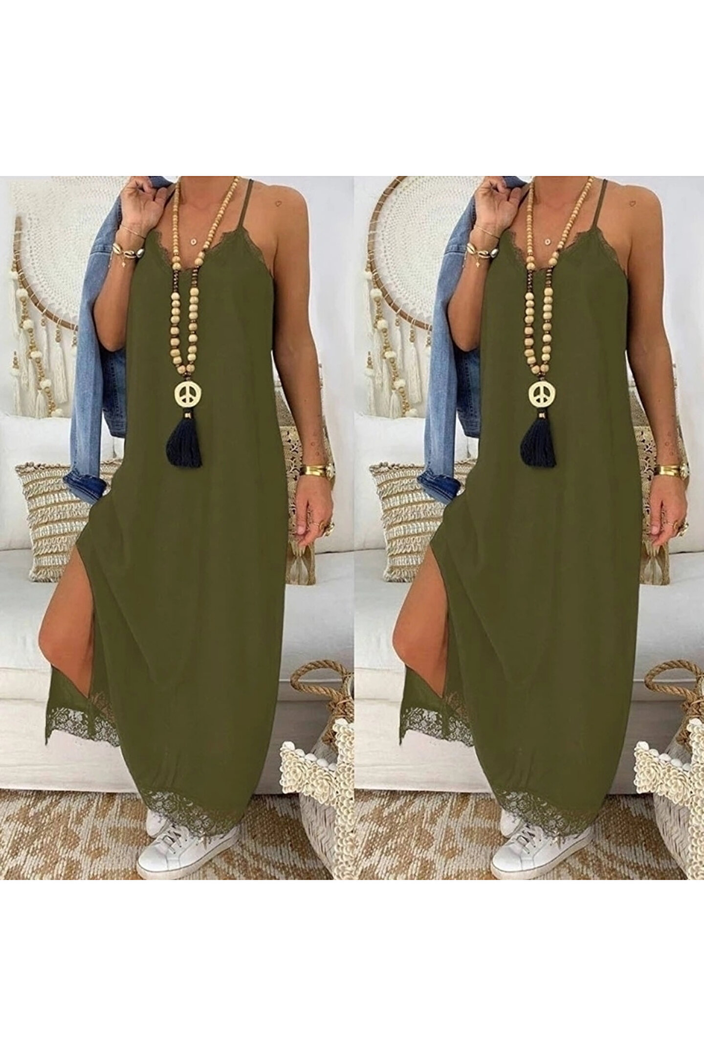 Kadın Haki Dantel Detay Viskon Elbise 3798