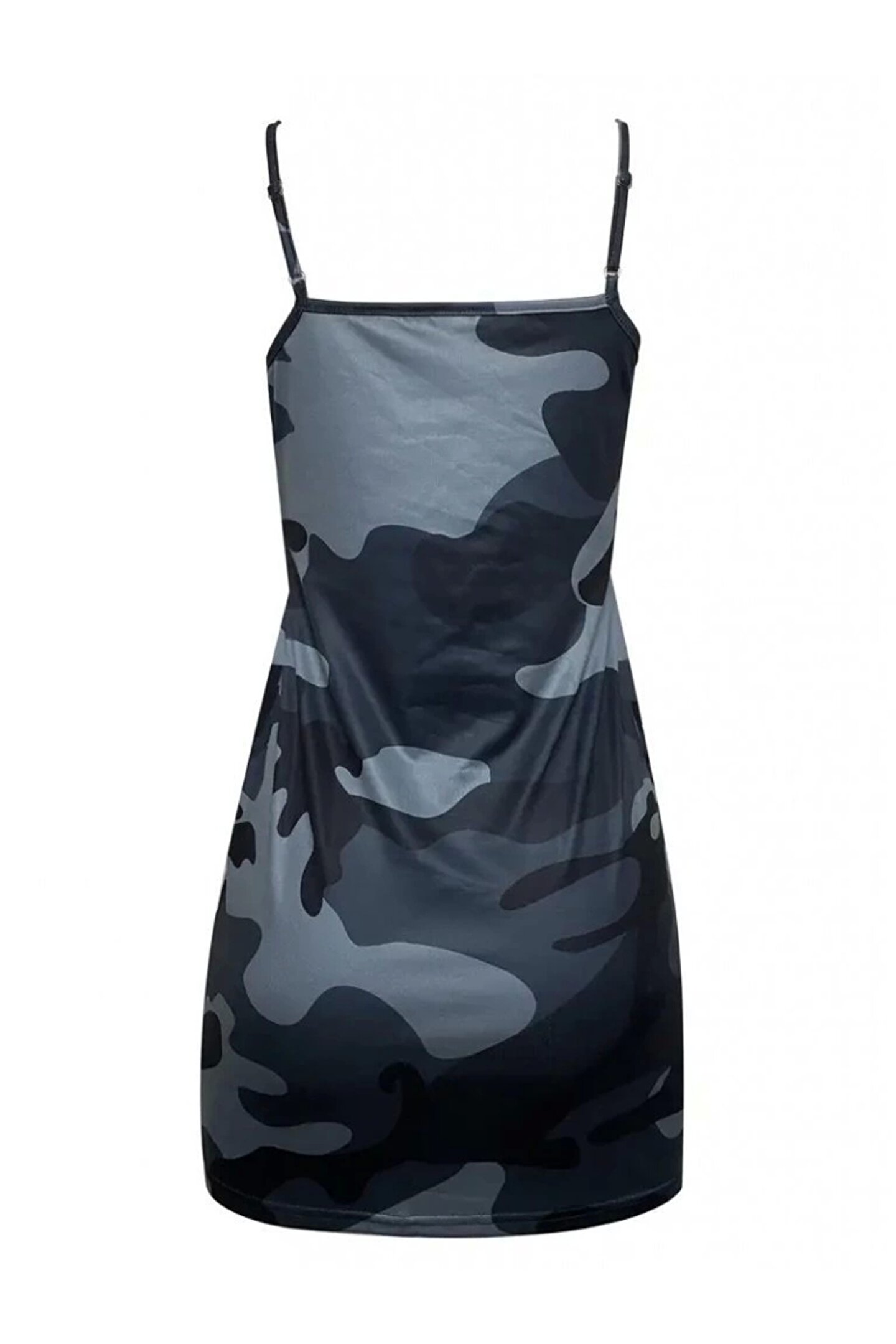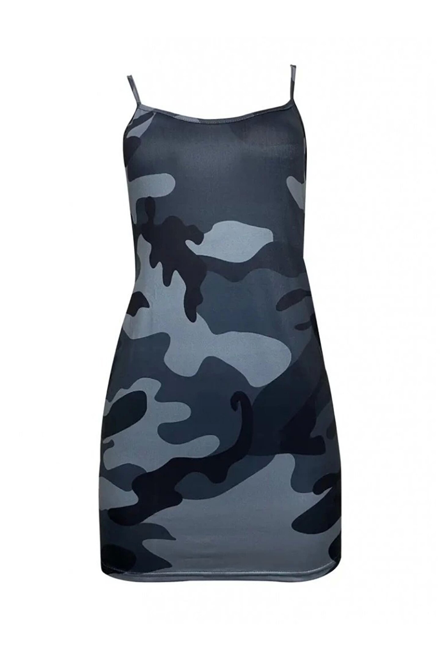Kadın Ip Askılı Kamuflaj Baskılı Viskon Elbise