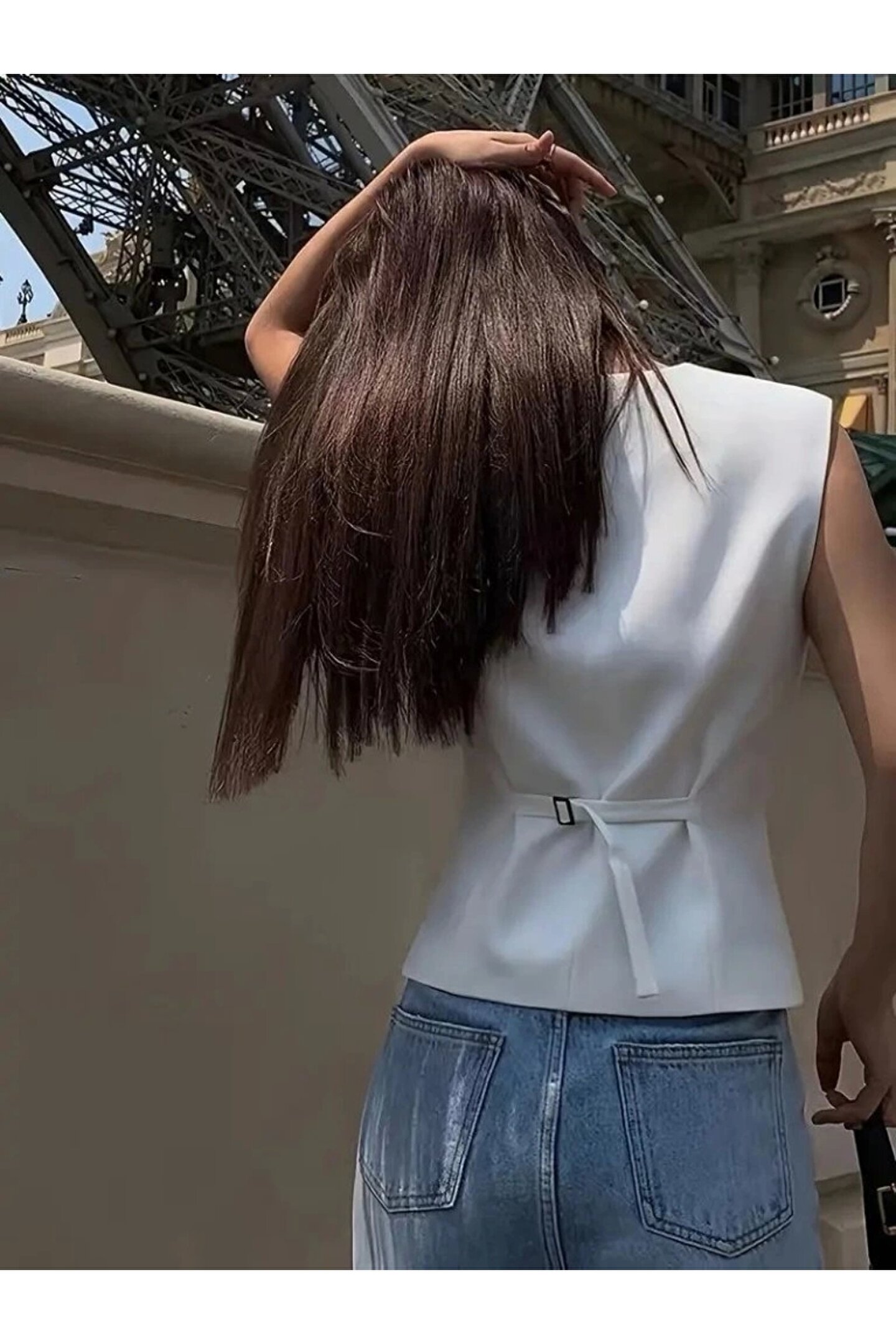 MODA Kadın Sıfır Kollu önden Düğmeli Atlas Yelek