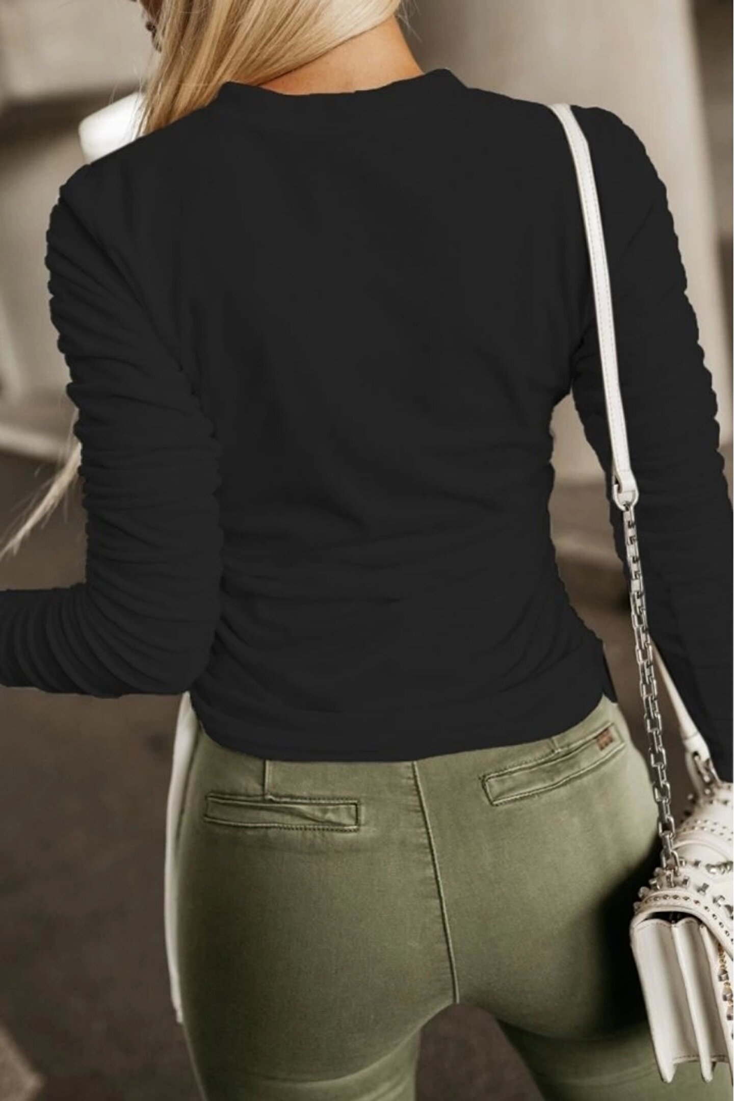 MODA Kadın Uzun Kollu Bisiklet Yaka Yanları Ve Kolları Büzgülü Kadife Bluz