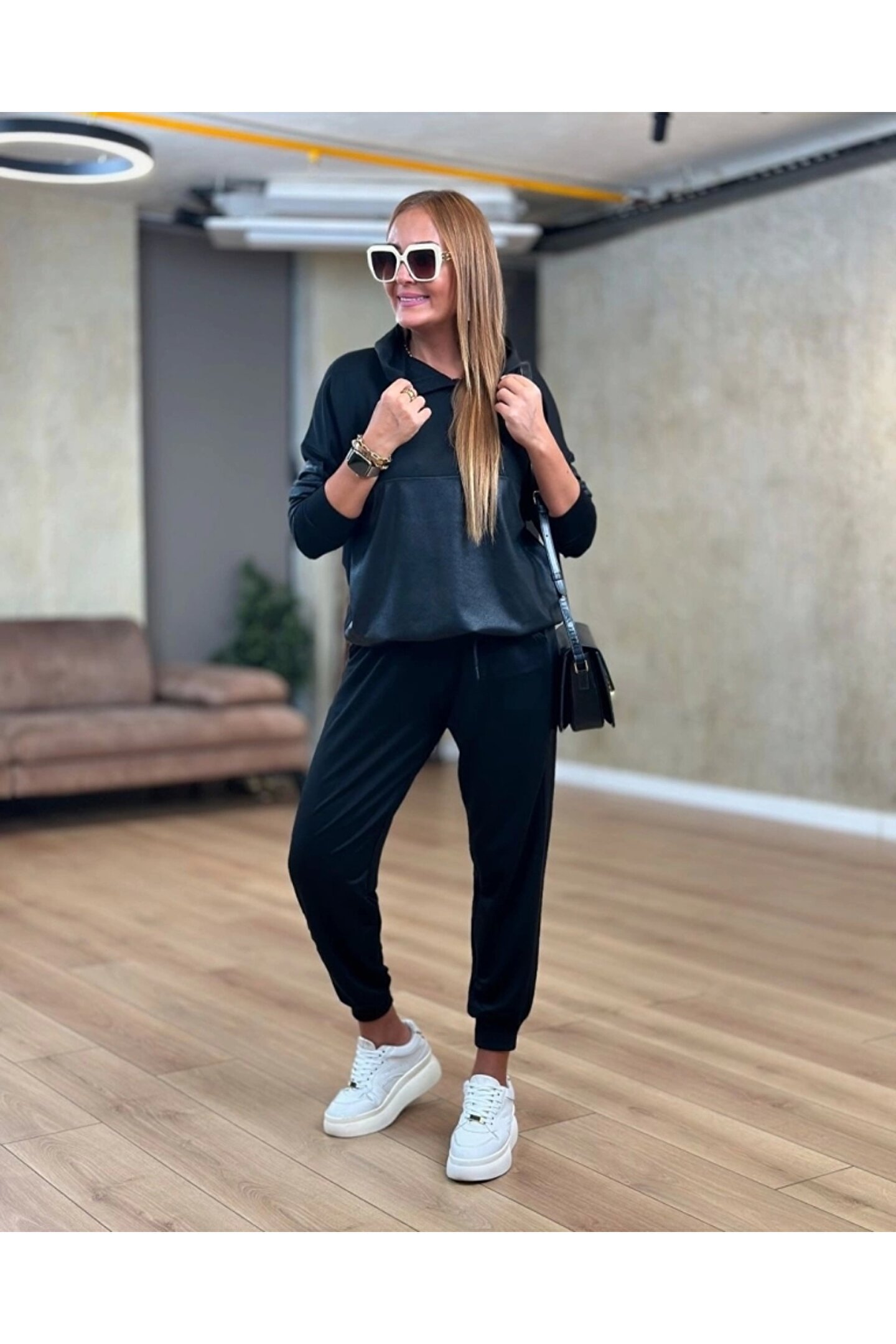 MODA Kadın Uzun Kollu Kapüşonlu Oversize Sweat Ve Pantolon Ikili Takım