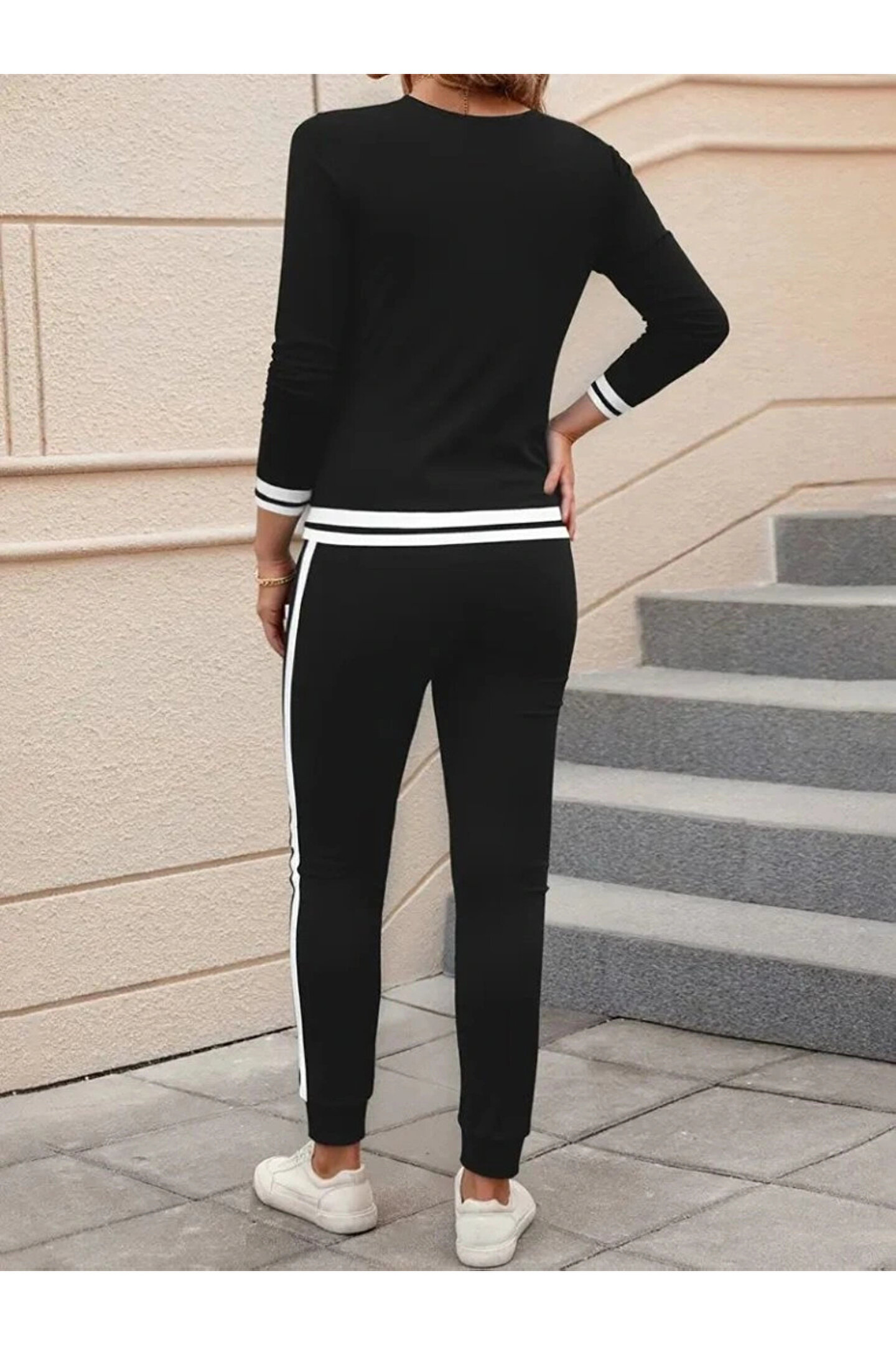 MODA Kadın Uzun Kollu V Yakalı Ribanalı Viskon Iki Iplik Bluz Ve Pantolon Ikili Takım