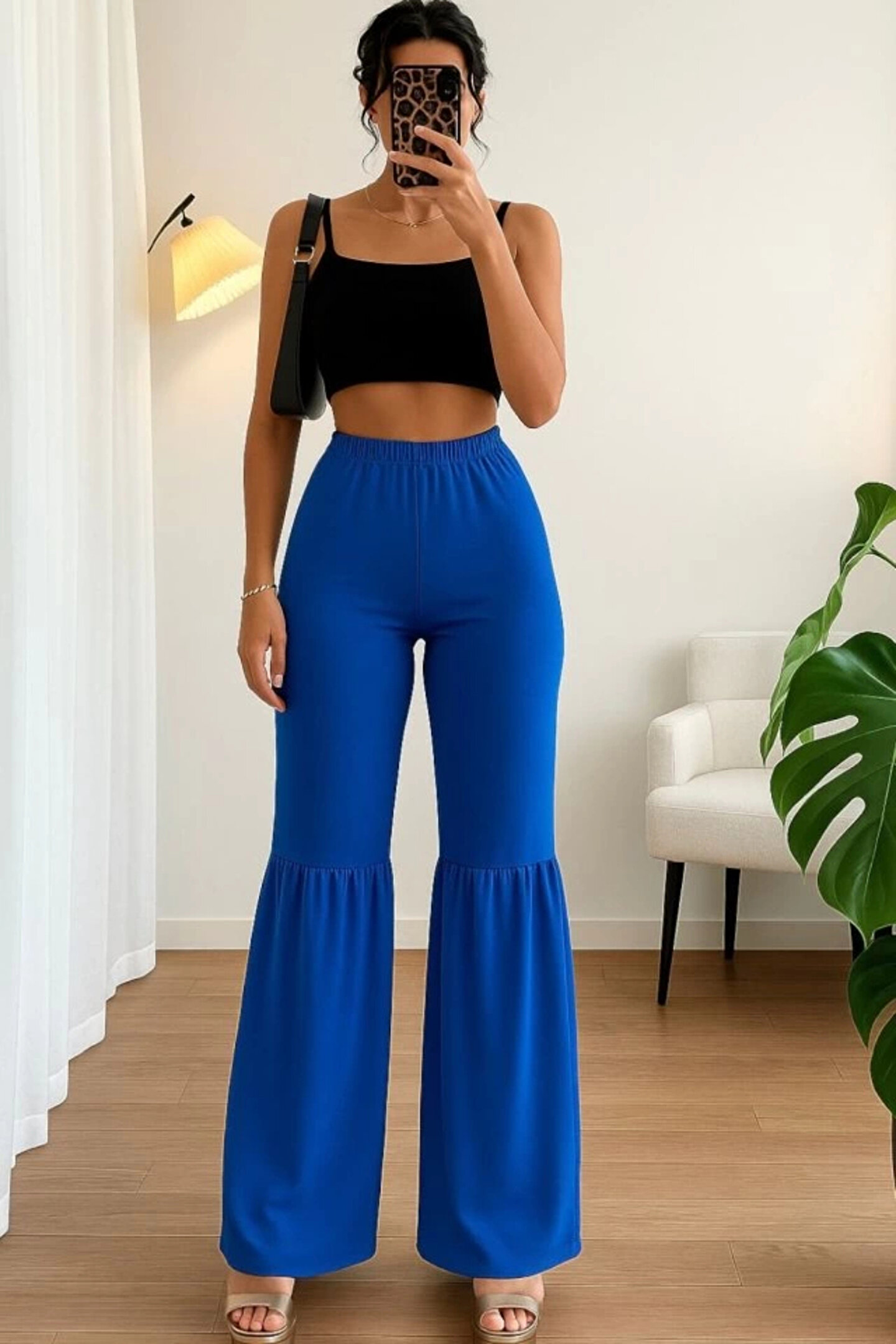 MODA Kadın Yüksek Bel Parça Detay Bol Paça Pantolon