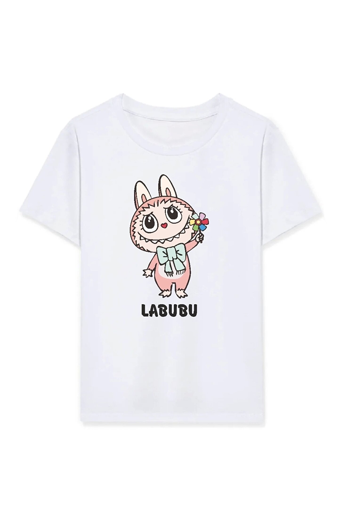 MODA Kız Labubu Çocuk Baskılı T-Shirt - Beyaz