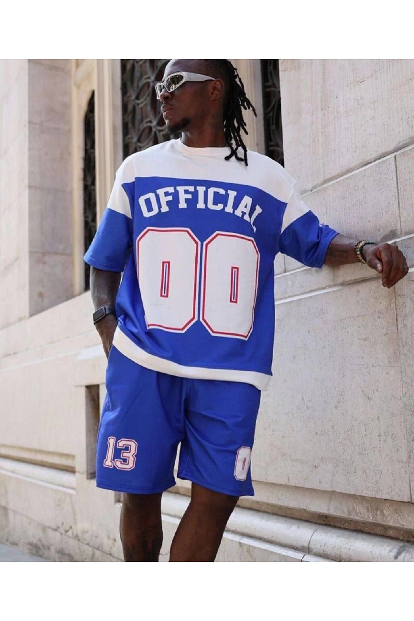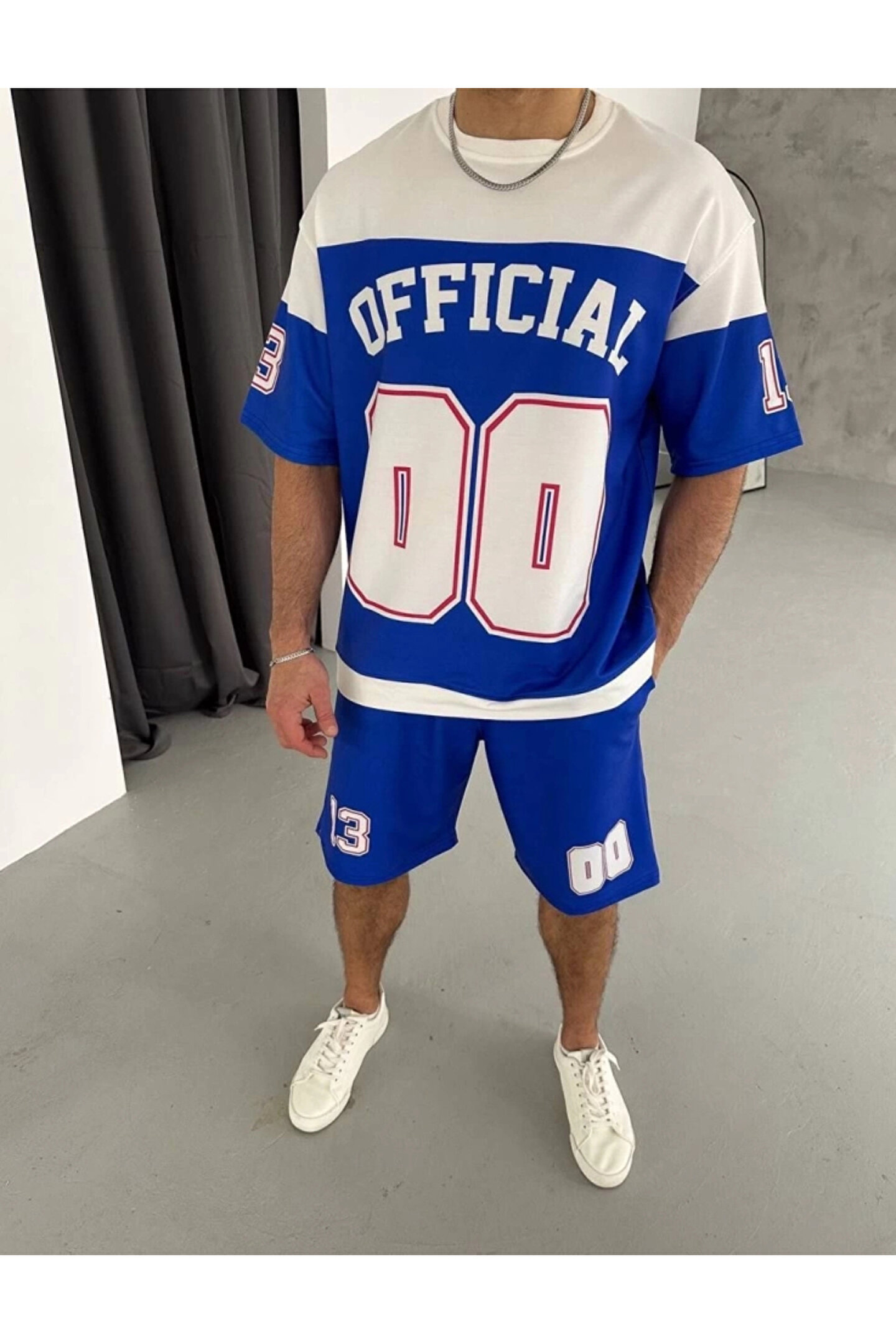 Dijital 00 Baskılı Şortlu Takım - Mavi