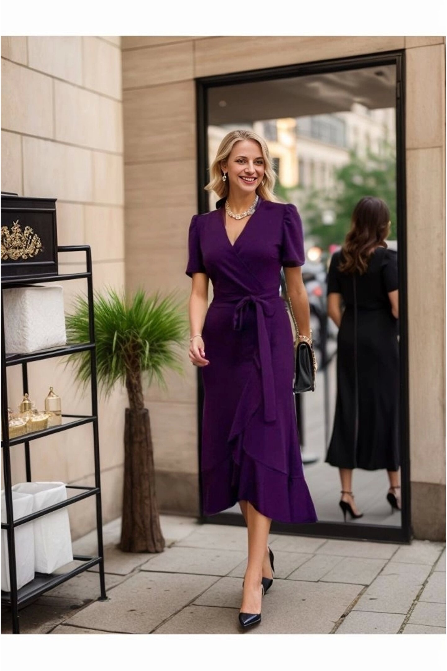 Kadın Kruvaze Yaka Midi Boy Kuşaklı Krep Elbise 120 Cm Modelin Ölçüleri: Boy:165, Kg:55, Göğüs:90, Bel:72, Kalça: 100 Modelin üzerindeki ürün M/38 bedendir EK OZELLIKLER-Eteği Fırfırlı; KAPATMA TURU-Kapanmiyor; TARZ-Elegant; YAKA-Kruvaze; UZUNLUK-Midi Boy; DESEN-Desensiz/Düz; KOL UZUNLUK-Kısa Kol; TARZ-Kokteyl; KALIP-Düz/Desensiz;