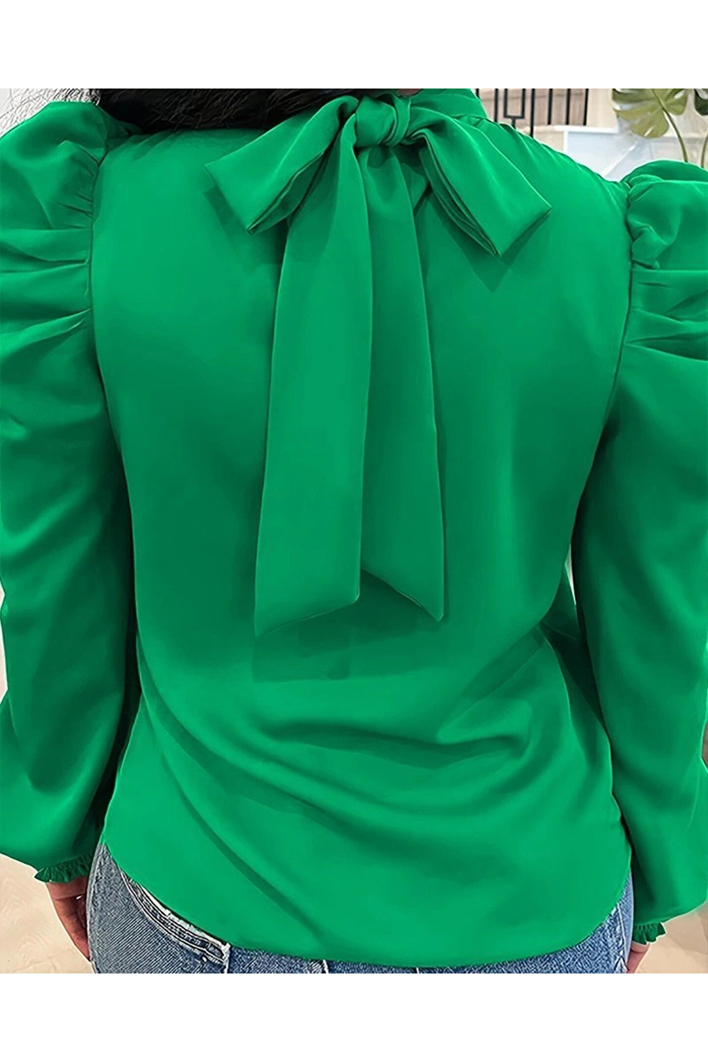 Kadın Uzun Kollu Balıkçı Yaka Arkadan Bağlamalı Omuzlardan Balon Ithal Krep Bluz