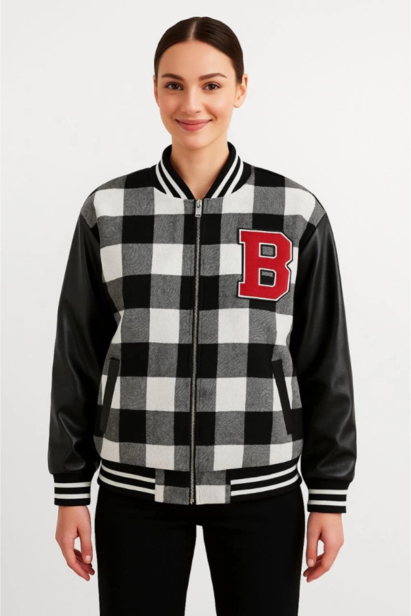 MODA MDB Kolları uni Deri Içi Astarlı Oduncu Kolej Içi Ceket Gri