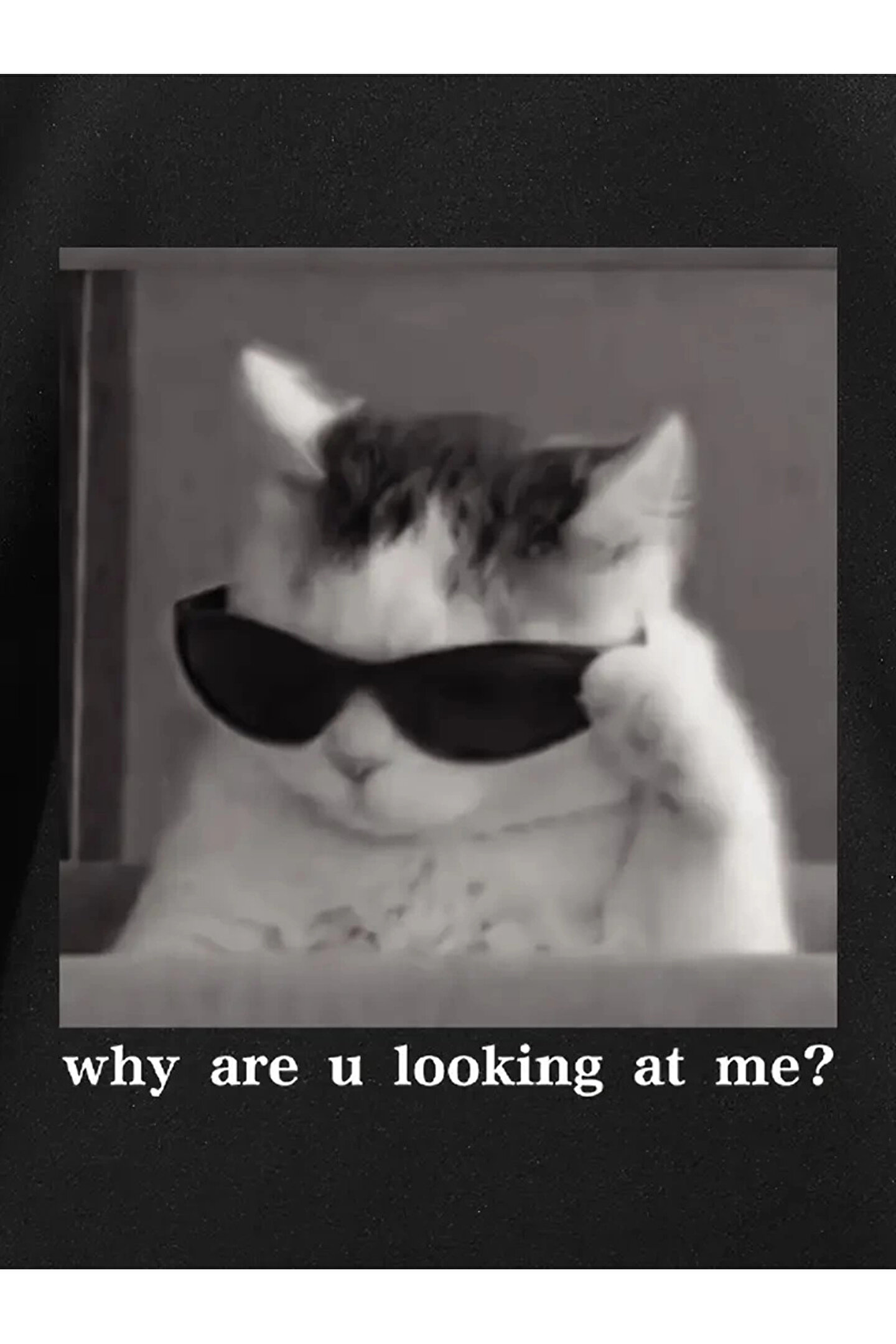 MODA Neden Bana Bakıyorsun? Komik Kedi Grafik Tişört - Dijital Baskılı Siyah Bol Kesim Streetwear Tişör