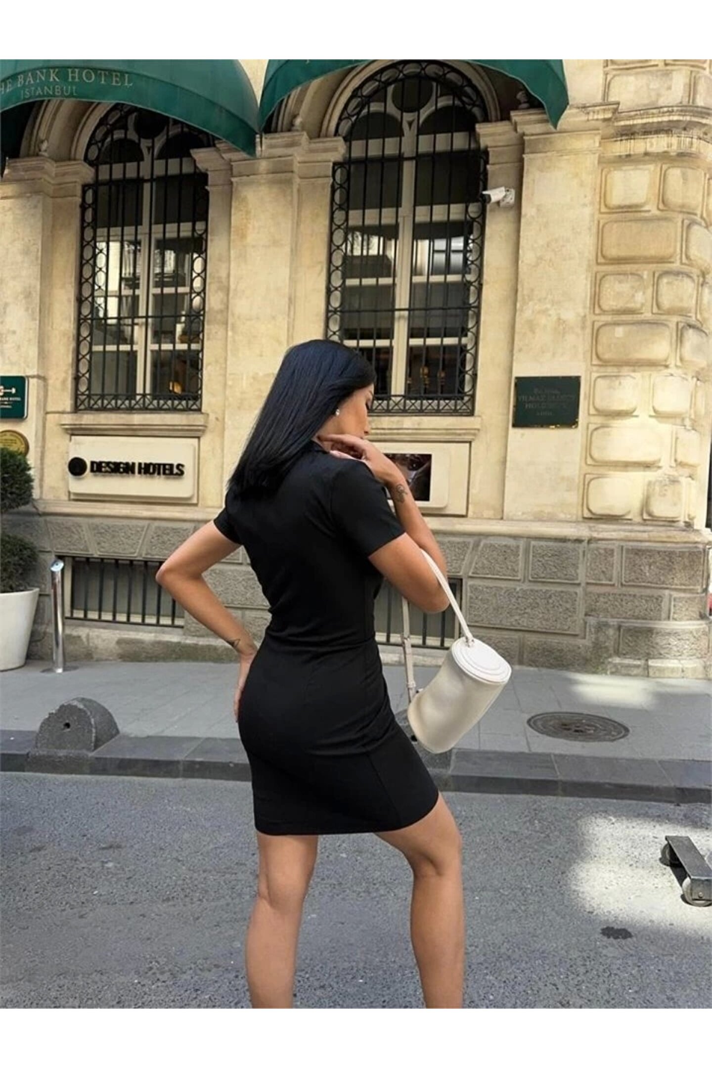 POLO YAKA YAKA KEMER DETAYLI KALEM ELBİSE - Siyah