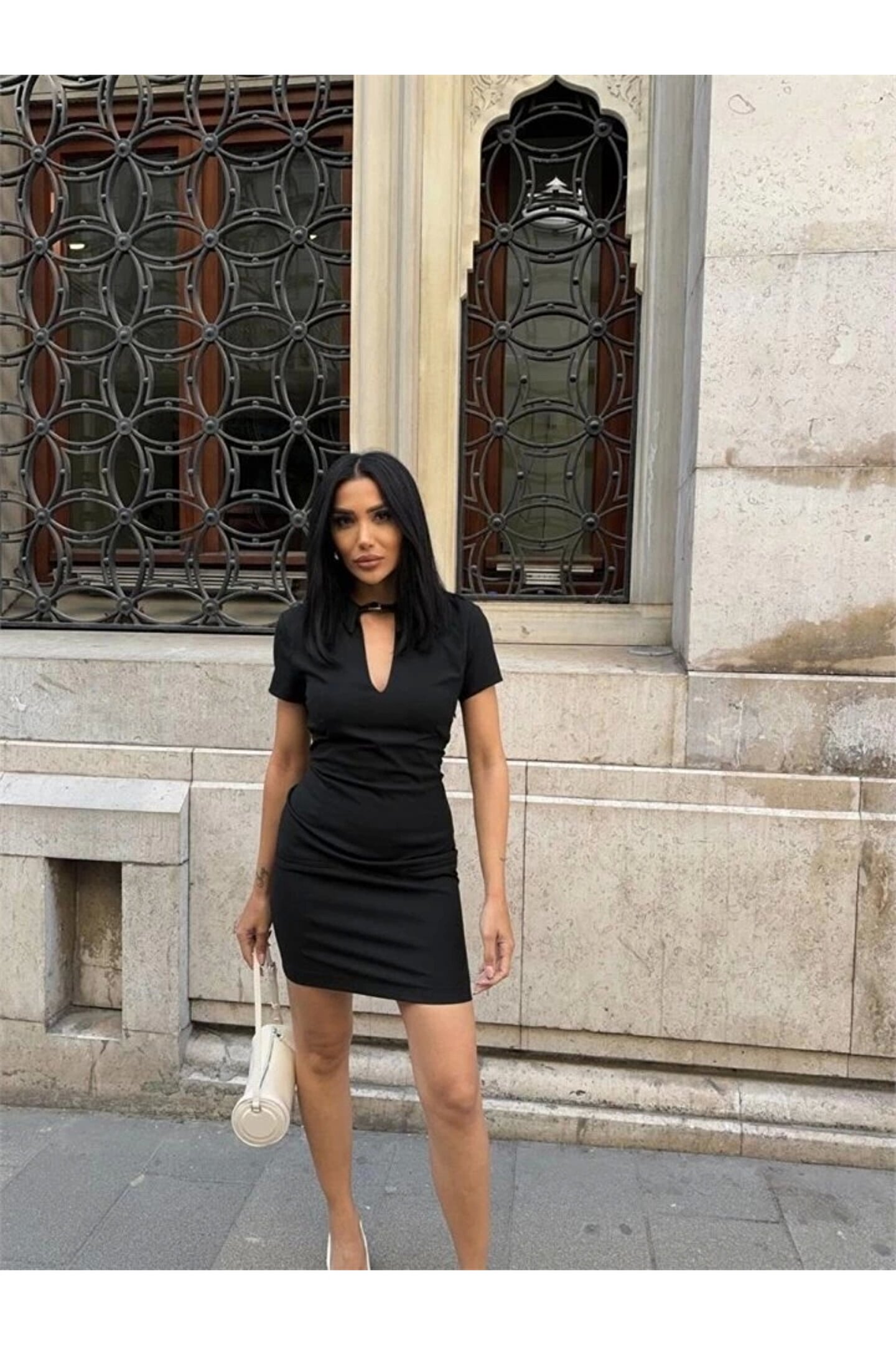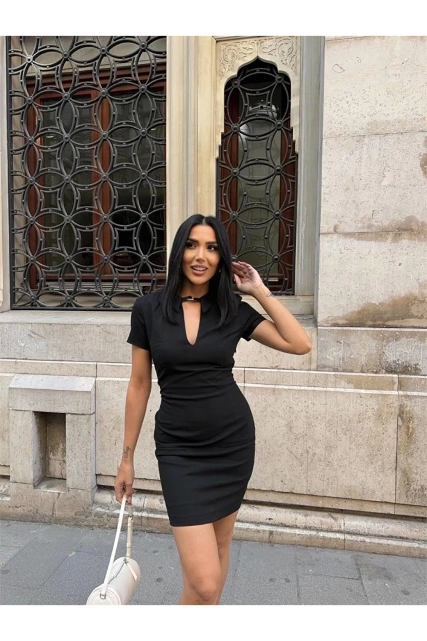 MODA POO YAKA YAKA KEER DETAYI KAE EBİSE Siyah