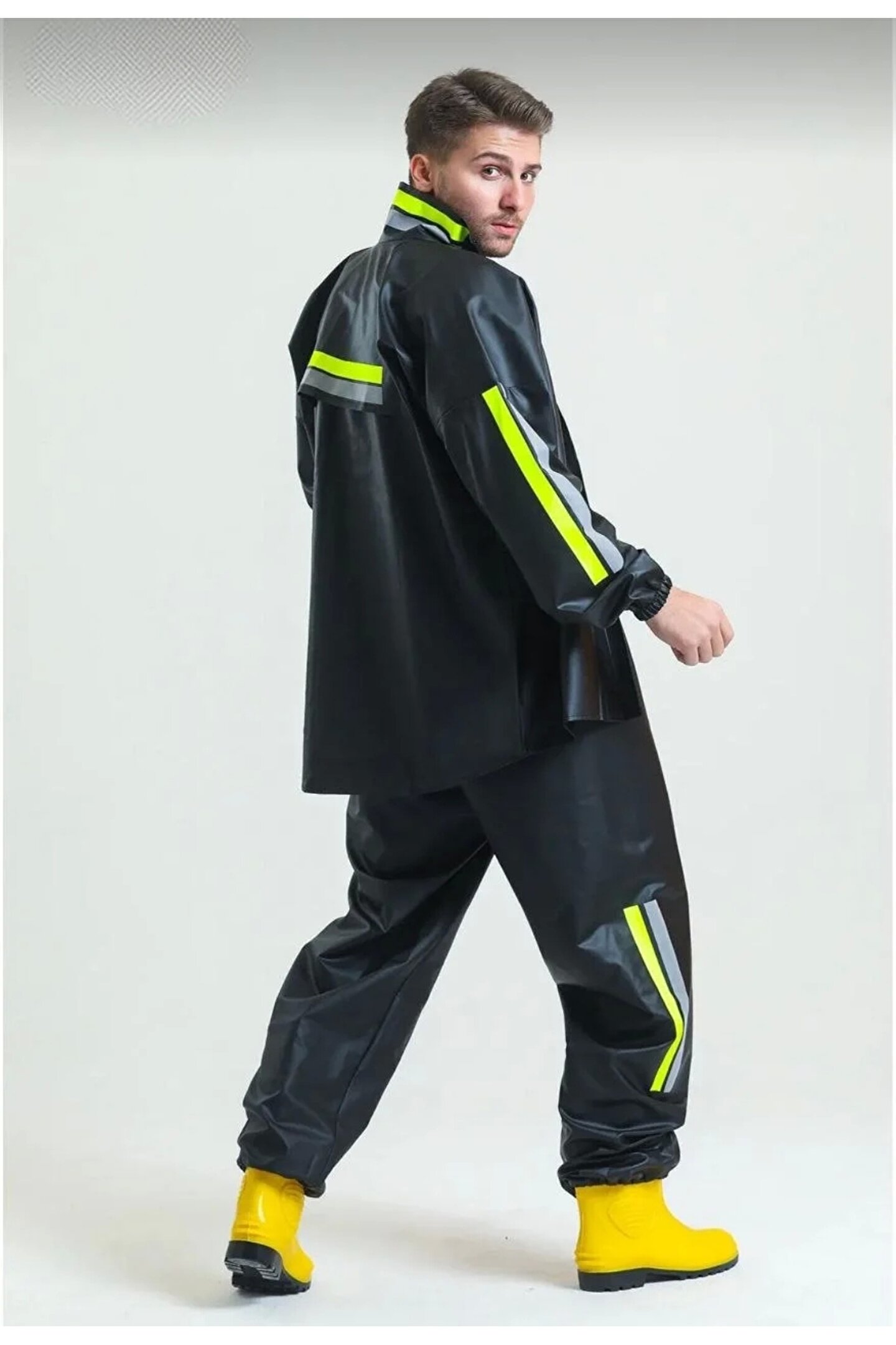 MODA Premium Motorcu Kurye Yağmurluk Takım Su Geçirmez PVC Kumaş Reflektörlü TÜBİTAK Onaylı - Siyah