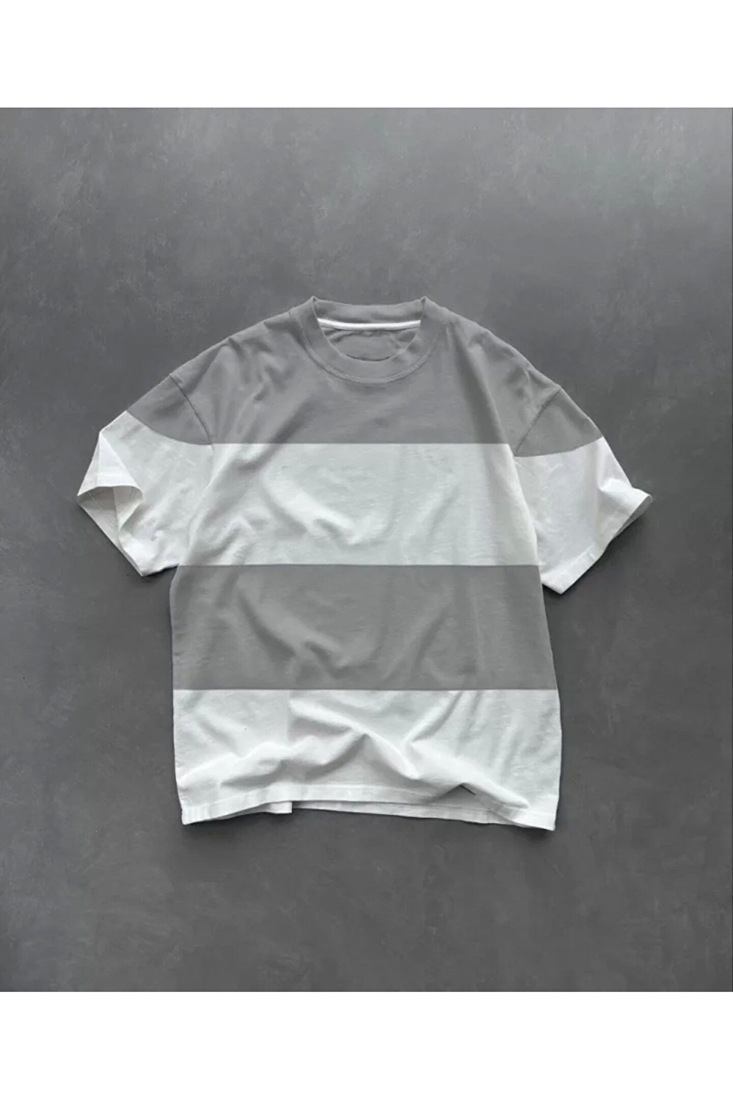 Unisex Bisiklet Yaka Parçalı T-Shirt - Gri