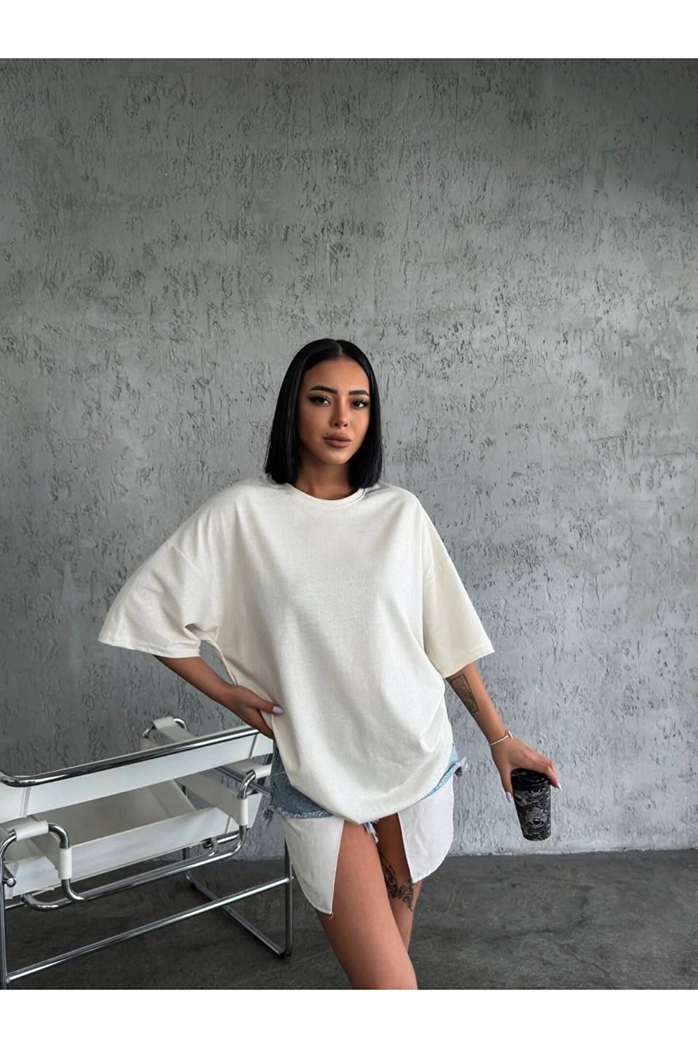 Unisex Düz Biskilet Yaka Oversize T-shirt - Beyaz