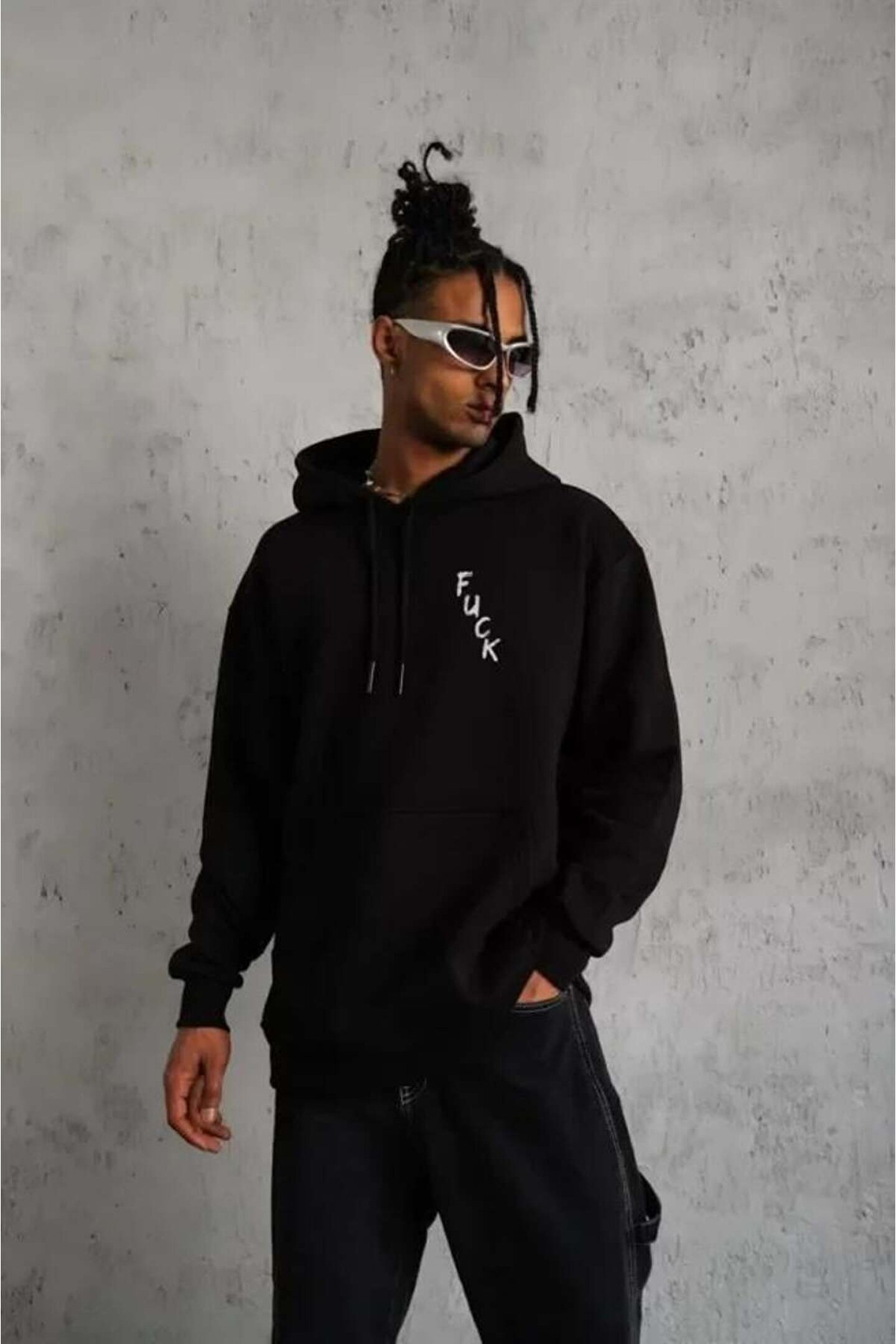MODA Unisex Kapşonlu Uzun Kol Baskılı Sweetshirt - Siyah
