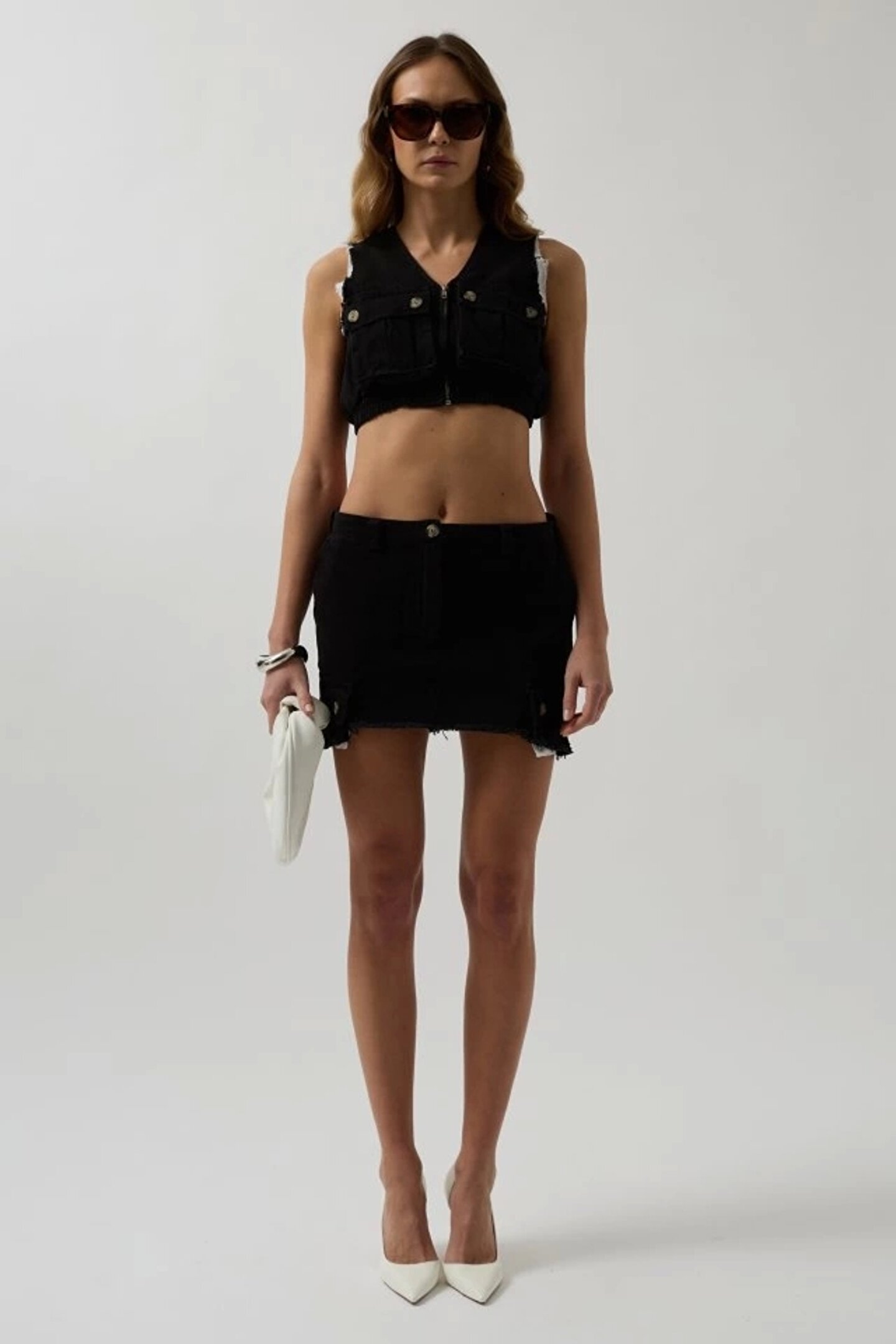 V Yaka Düğmeli Crop Yelek