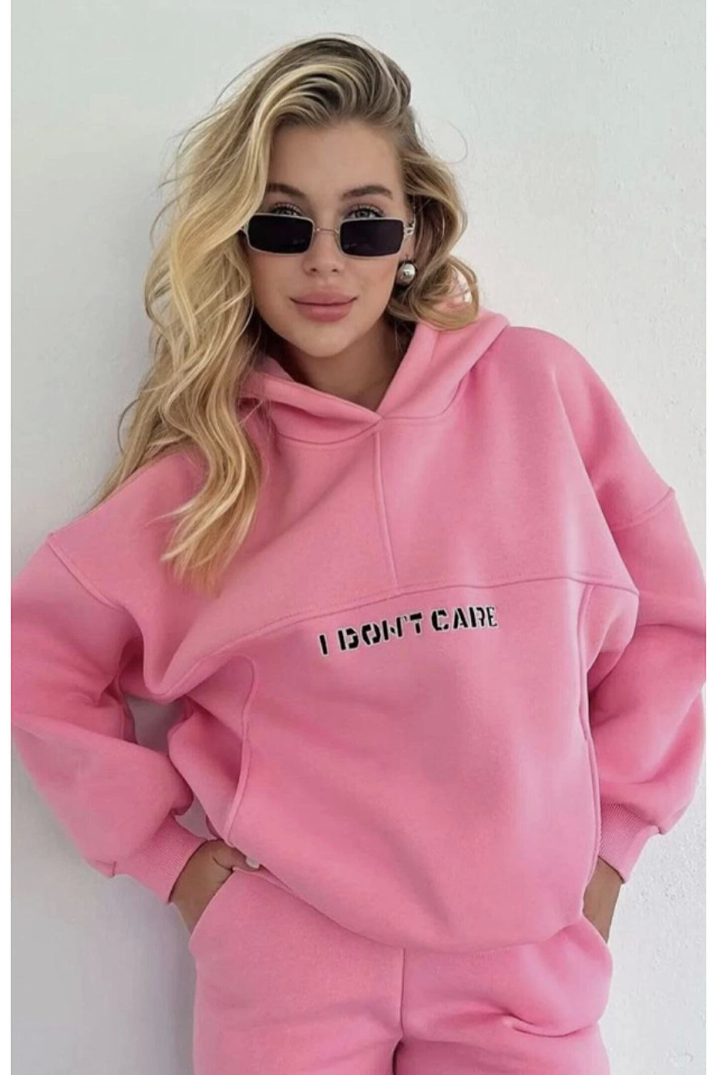 MODA Velmora Nakış İşlemeli Üç İplik Sweat Takım- Pembe -VLMR