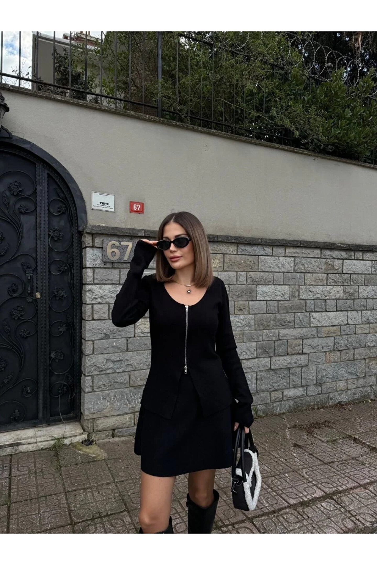 Bu kadın üst, bahar ve kış sezonlarına uygun olarak tasarlanmıştır.; Uzun kollu ve çift taraflı fermuarlı olan üst, açık yaka tasarımıyla şıklık sunarken, mini boyu ile modern bir görünüm elde edilmiştir.; Tam kalıp yapısı, vücuda oturan zarif bir siluet oluşturur.