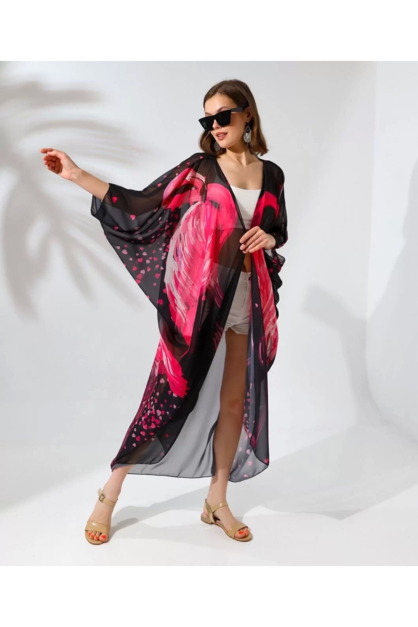 MODA Velmora Rahat Kesim Şifon Kimono - Siyah -VLMR