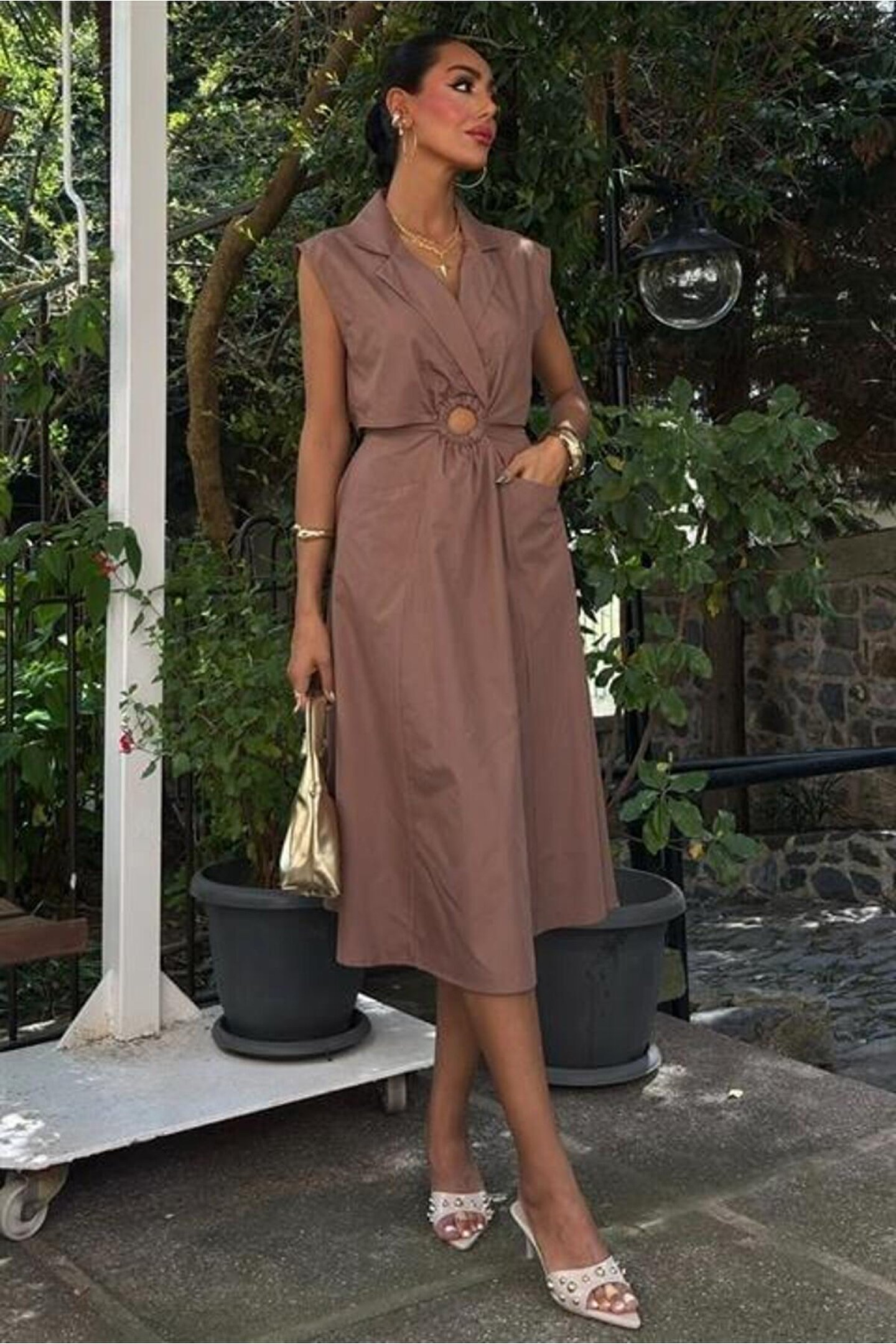 Göbeği Halka Detaylı Midi Boy Elbise 2896 R8-H-K1