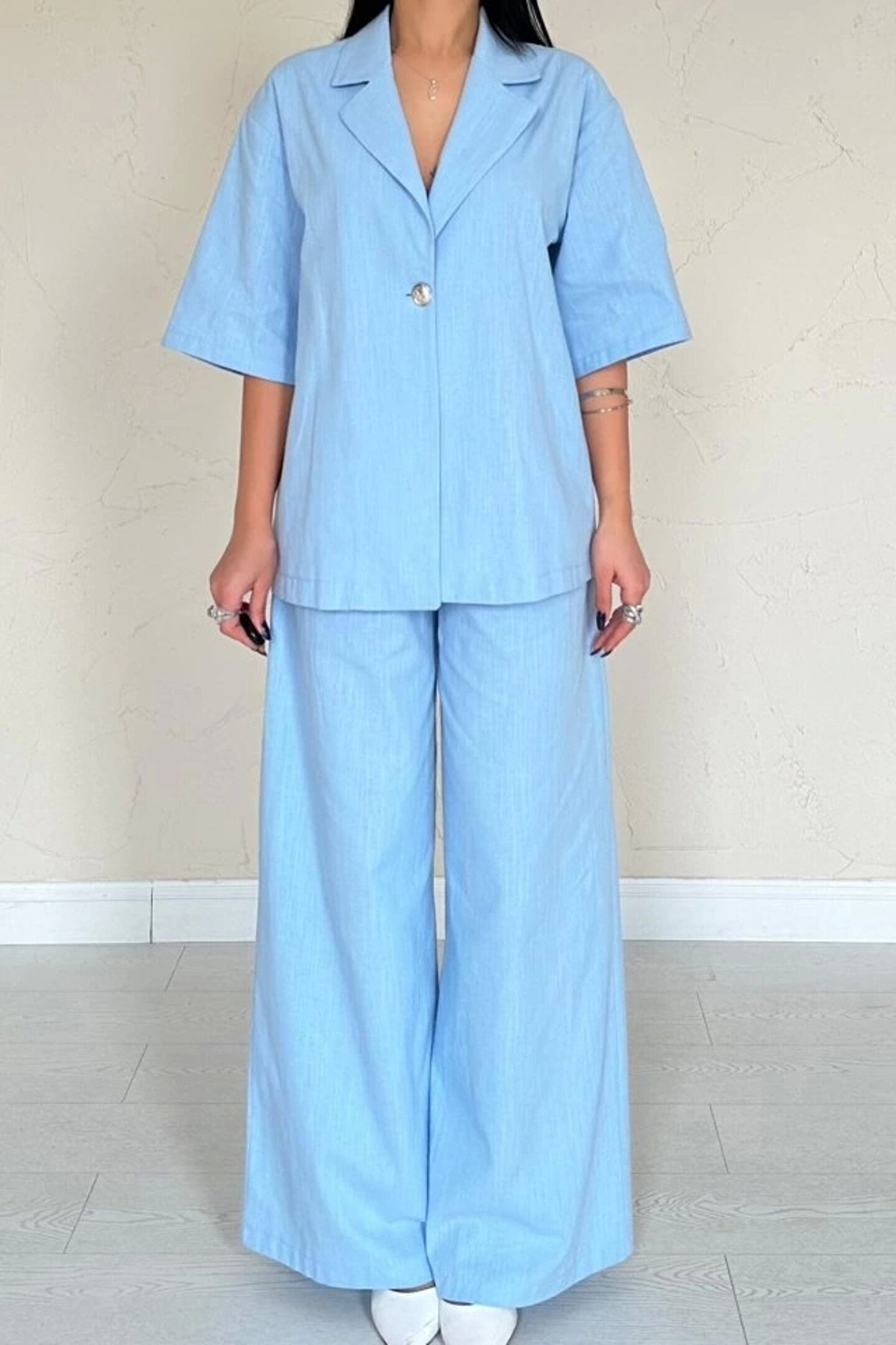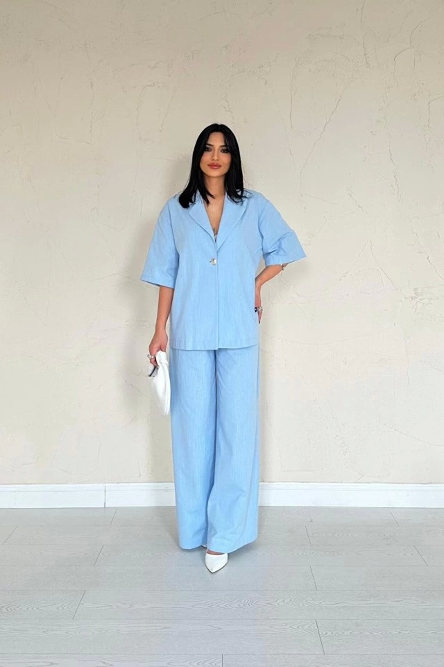 MODA ZERAFİNA Mavi Önü Tek Düğmeli Ceket Pantolon Takım
