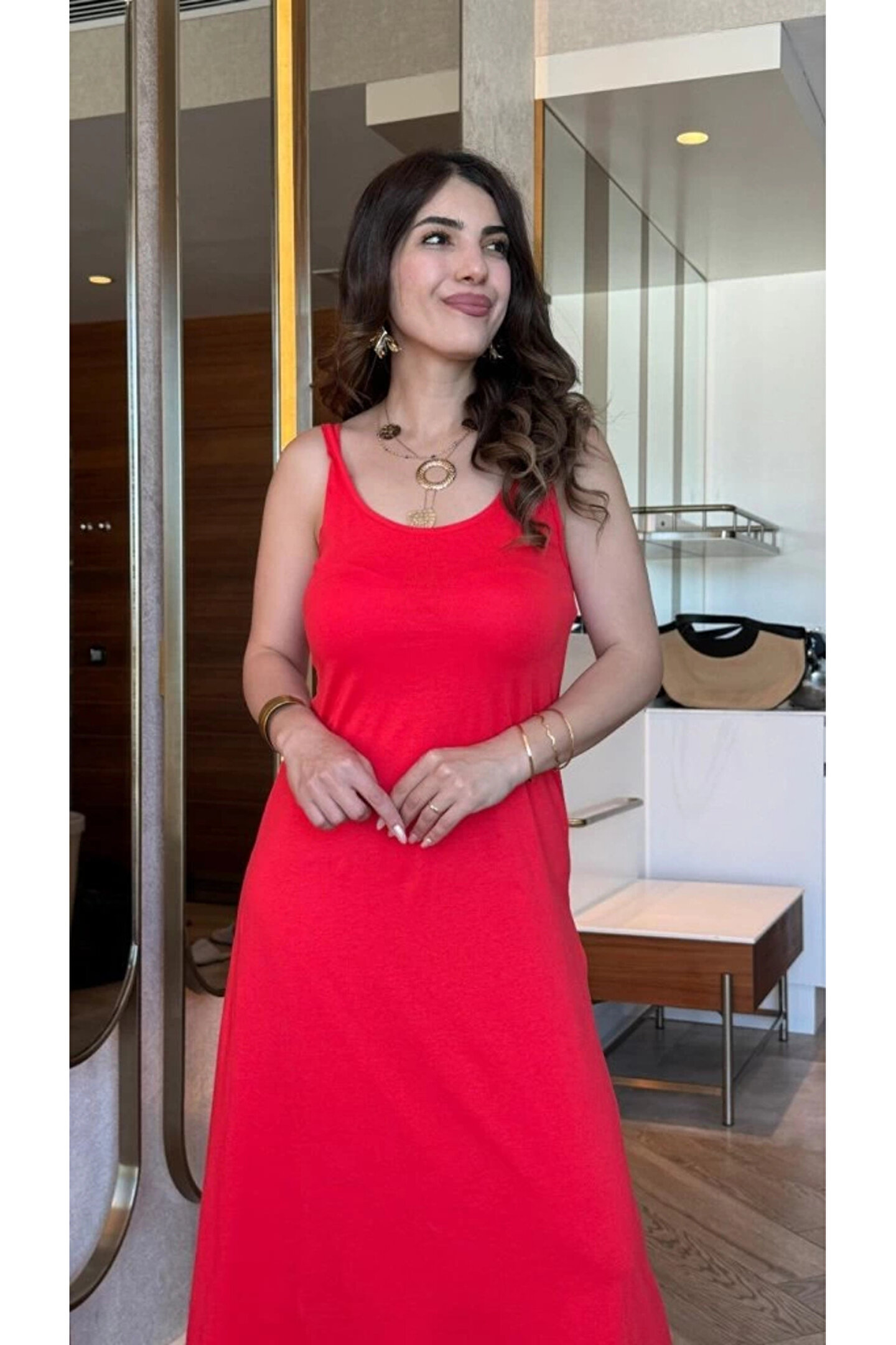 MODA55 MDB Kadın Askılı Yuvarlak Yakalı Viskon Elbise