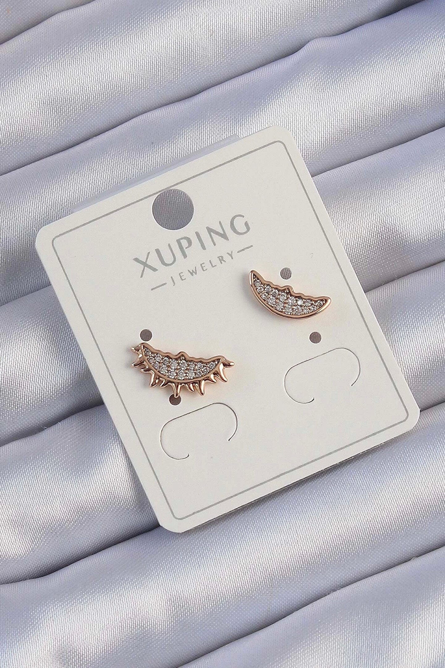 modadamoda Xuping Rose Renk Zirkon Taşlı Ay ve Güneş Tasarımlı Küpe
