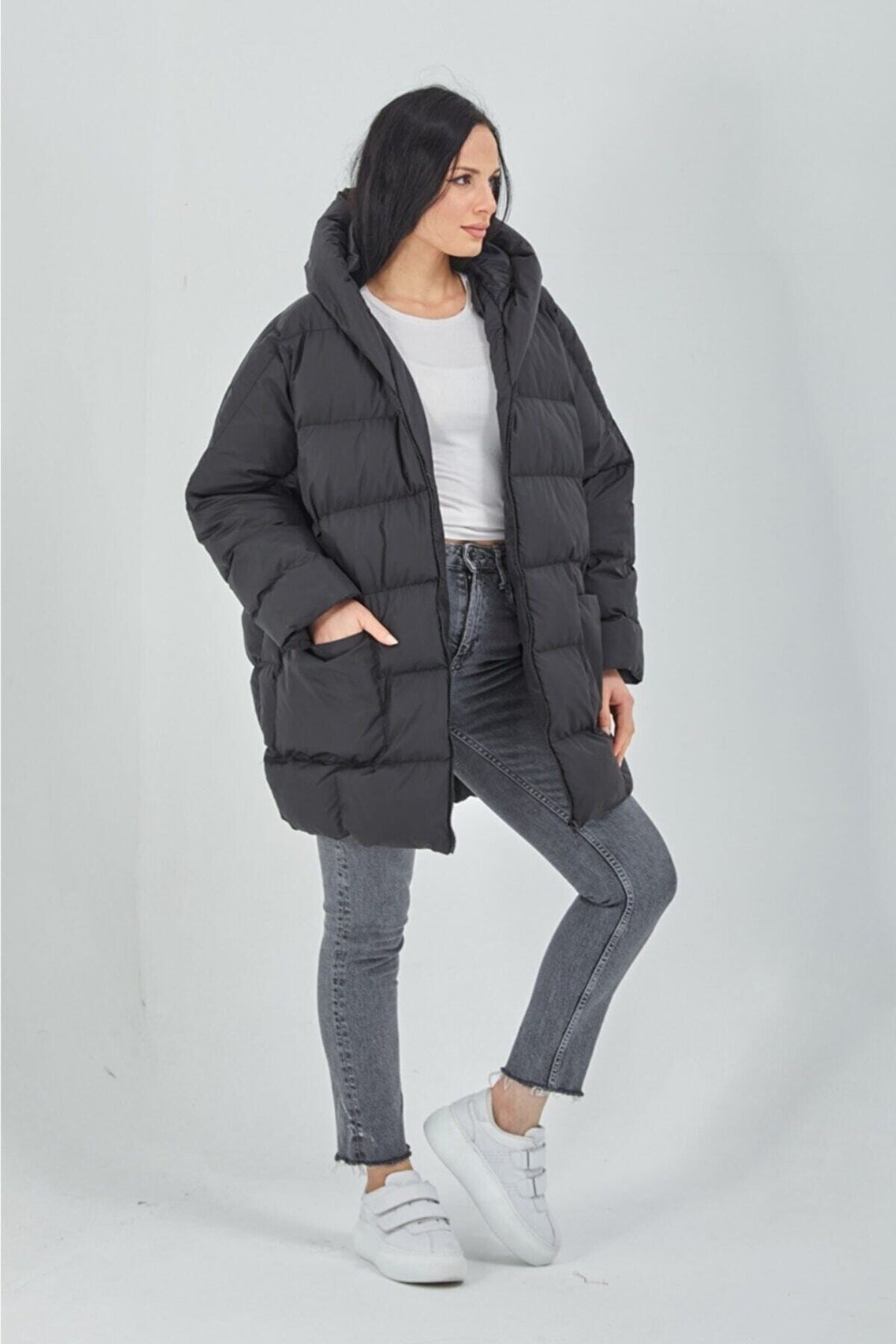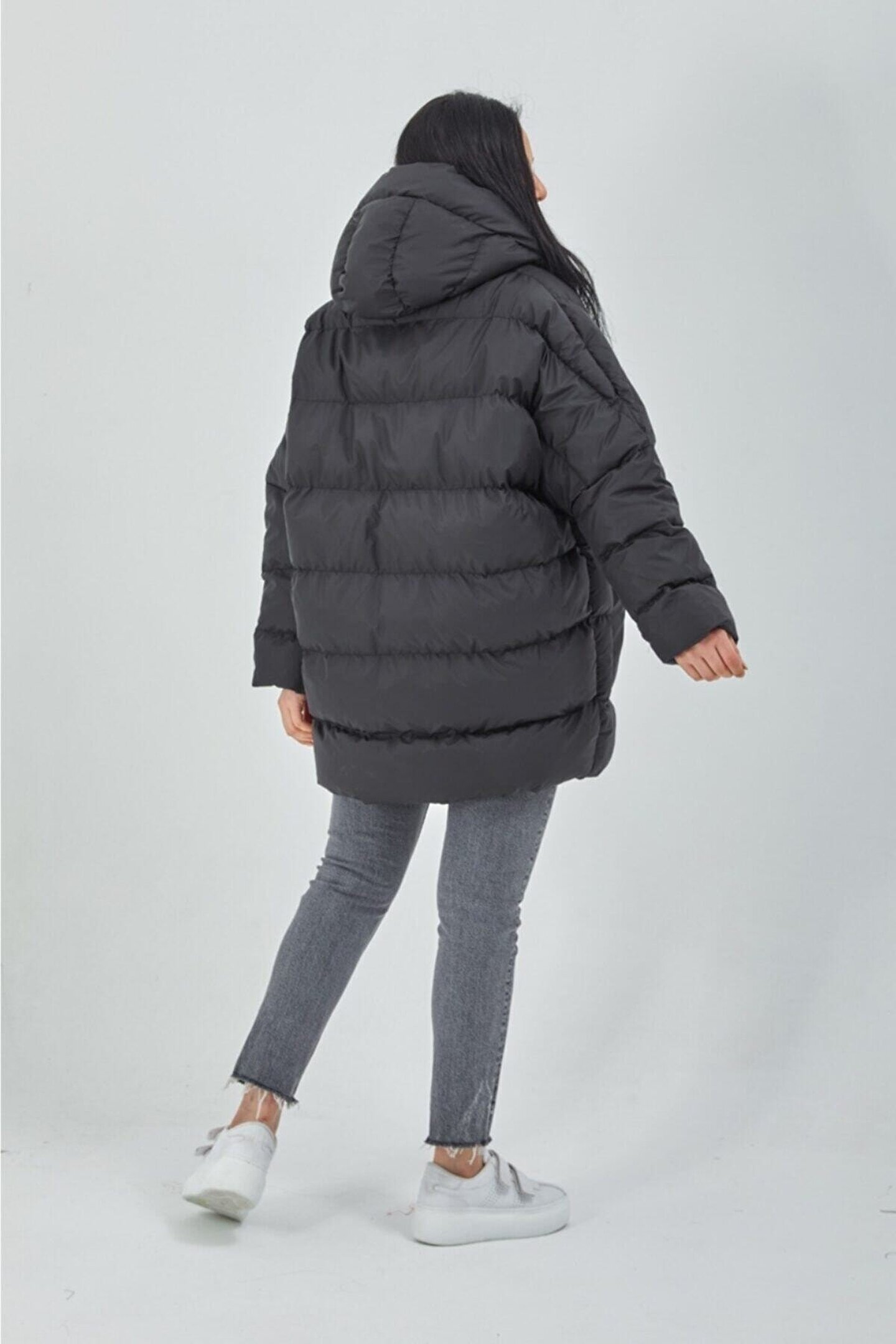- Kapüşonlu tasarımı ile başınızı soğuktan korurken şık bir görünüm sunar; - Uzun kollu yapısı, kollarınızı tamamen sararak sıcak tutar; - Uzun boy kesimi sayesinde bacaklarınızın alt kısmını da korur ve rahat bir kullanım sağlar; - Şişme silueti ile modern ve trend bir görünüm kazandırırken, aynı zamanda ekstra sıcaklık sunar; - Esnek elastan materyali sayesinde hareket özgürlüğünüzü kısıtlamaz ve konforlu bir deneyim yaşatır; - Fermuarlı kapama şekli pratik kullanım imkanı tanırken, montunuzu kolayca giyip çıkartmanızı sağlar; - Oversize kalıbı rahat bir oturuş sunarken, büyük beden koleksiyonuna özel tasarlanmıştır; - Çift cepli yapısı küçük eşyalarınız için pratik saklama alanları sunar.; - Standart kol tipi ile günlük kullanım için idealdir; ne çok dar ne de çok bol bir kesime sahiptir.; - Düz deseniyle zamansız bir stil oluştururken her tür kombinle uyum sağlar.; - Trend stil anlayışına uygun olarak tasar;