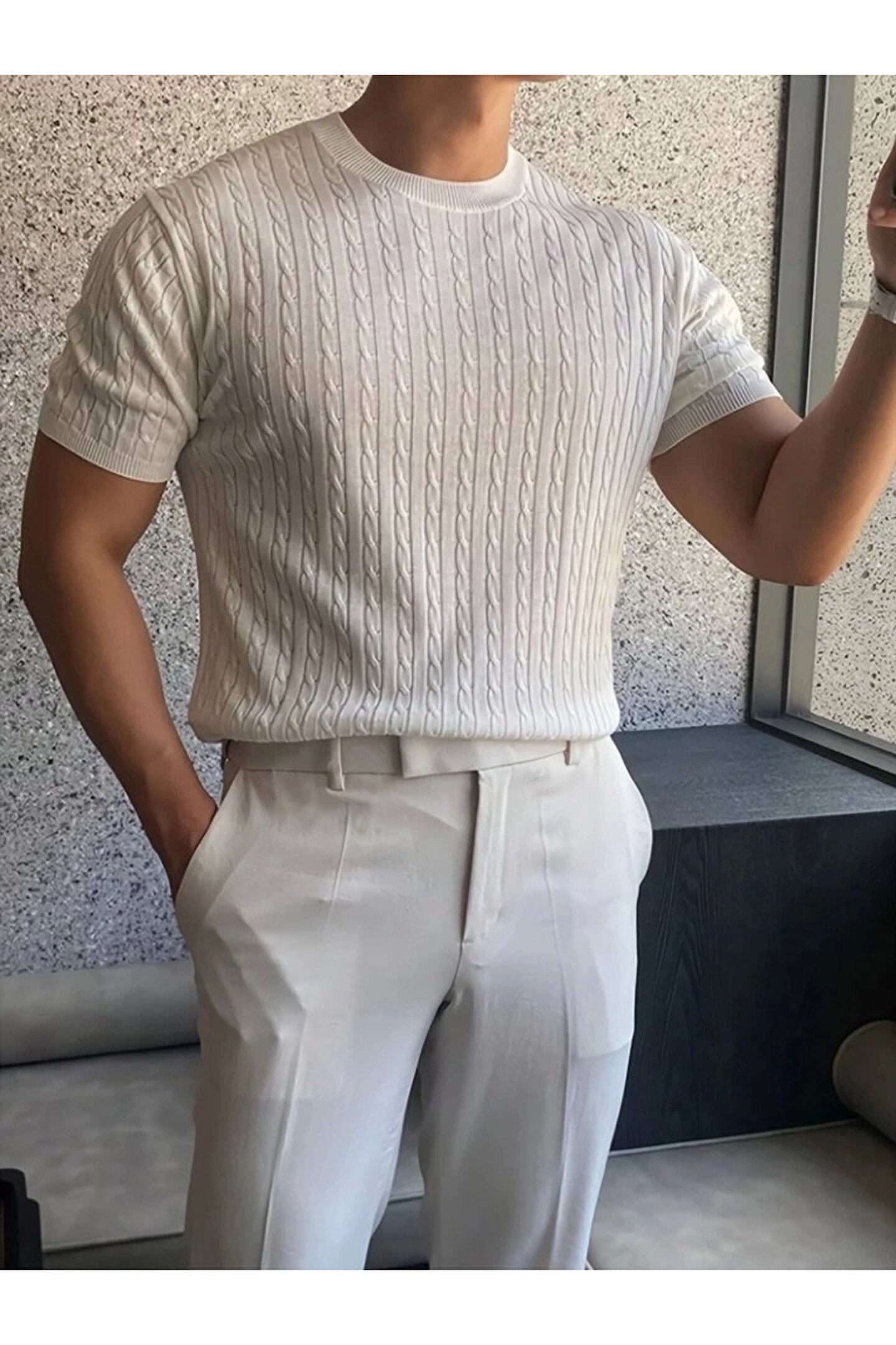 Erkek Kısa Kollu Bisiklet Yaka Triko Bluz