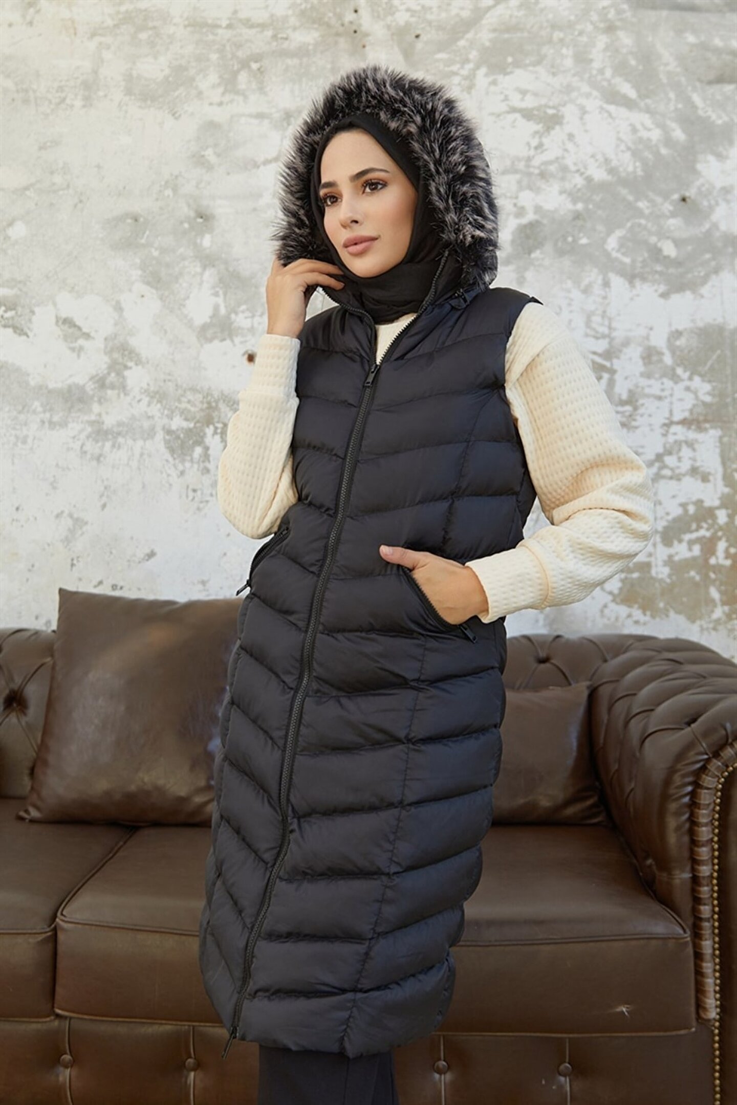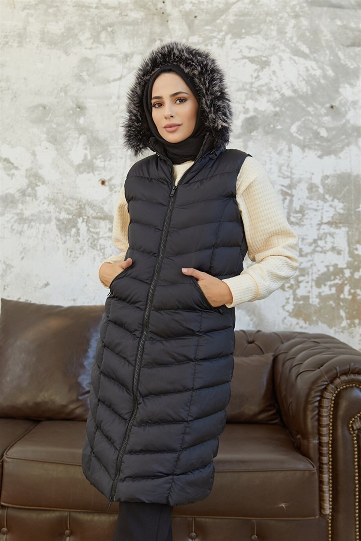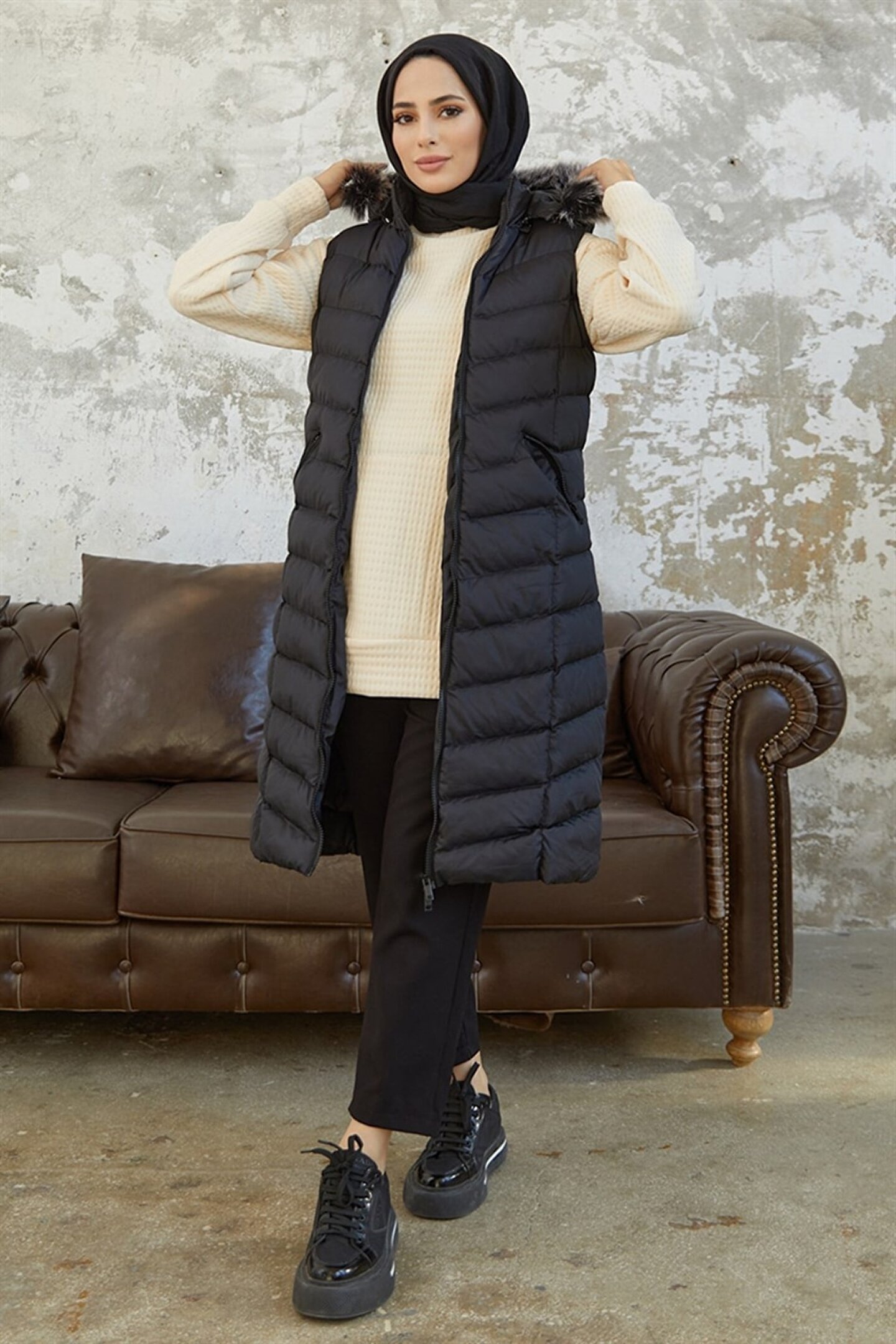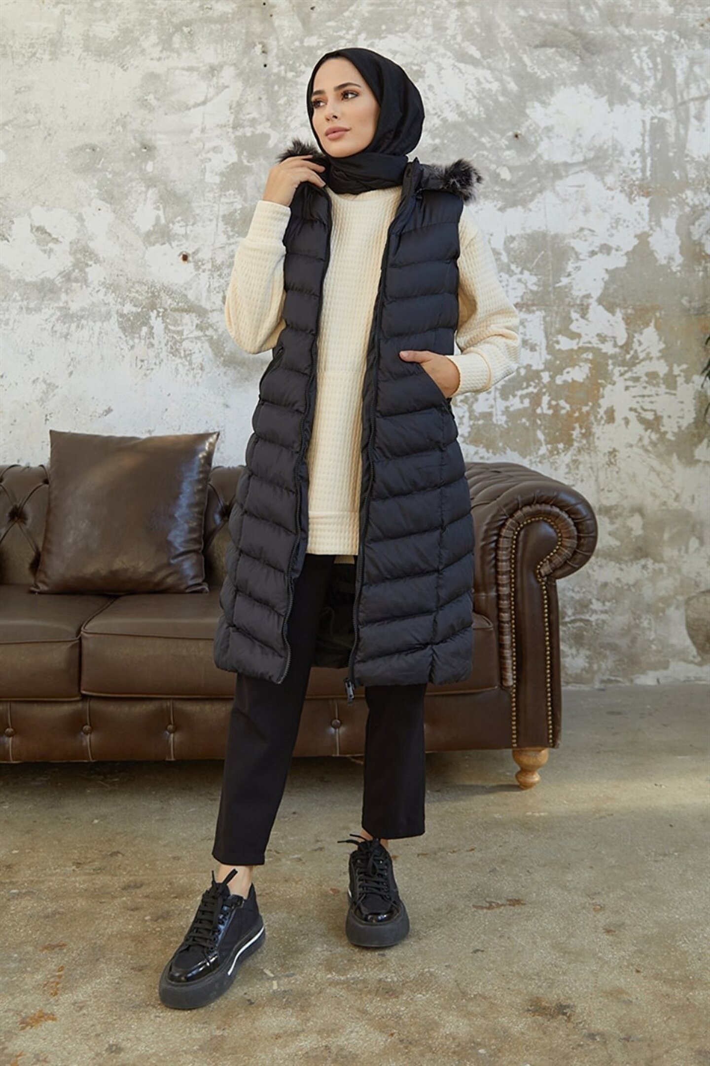 Denim kumaştan üretilmiş olup, dayanıklılığı ve şık duruşuyla dikkat çeker.; Slim fit kalıbı sayesinde modern ve feminen bir siluet sunar.; Uzun boy tasarımı ile hem rahatlık hem de stil sahibi bir görünüm sağlar.; Tüm yaş gruplarına hitap eden tasarımıyla geniş bir kullanıcı yelpazesine sahiptir.; Şişme yelek formu, soğuk havalarda ekstra konfor ve sıcaklık sunar.; Siyah rengiyle kolayca kombinlenebilir ve zamansız bir parça olarak gardrobunuzda yerini alır.;
