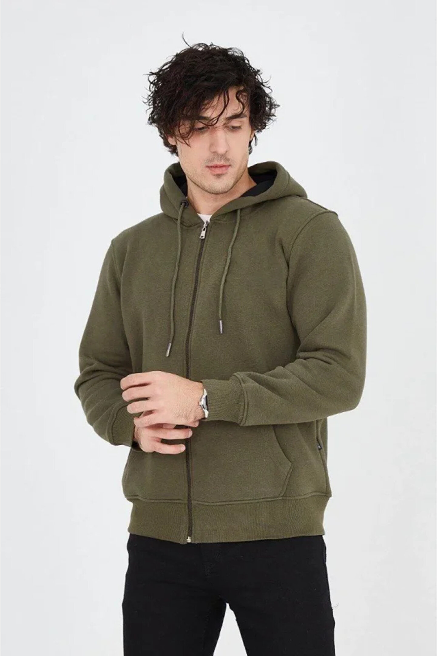 modamtn EQURİ Erkek Kapüşonlu Düz Fermuarlı Hırka - Yeşil