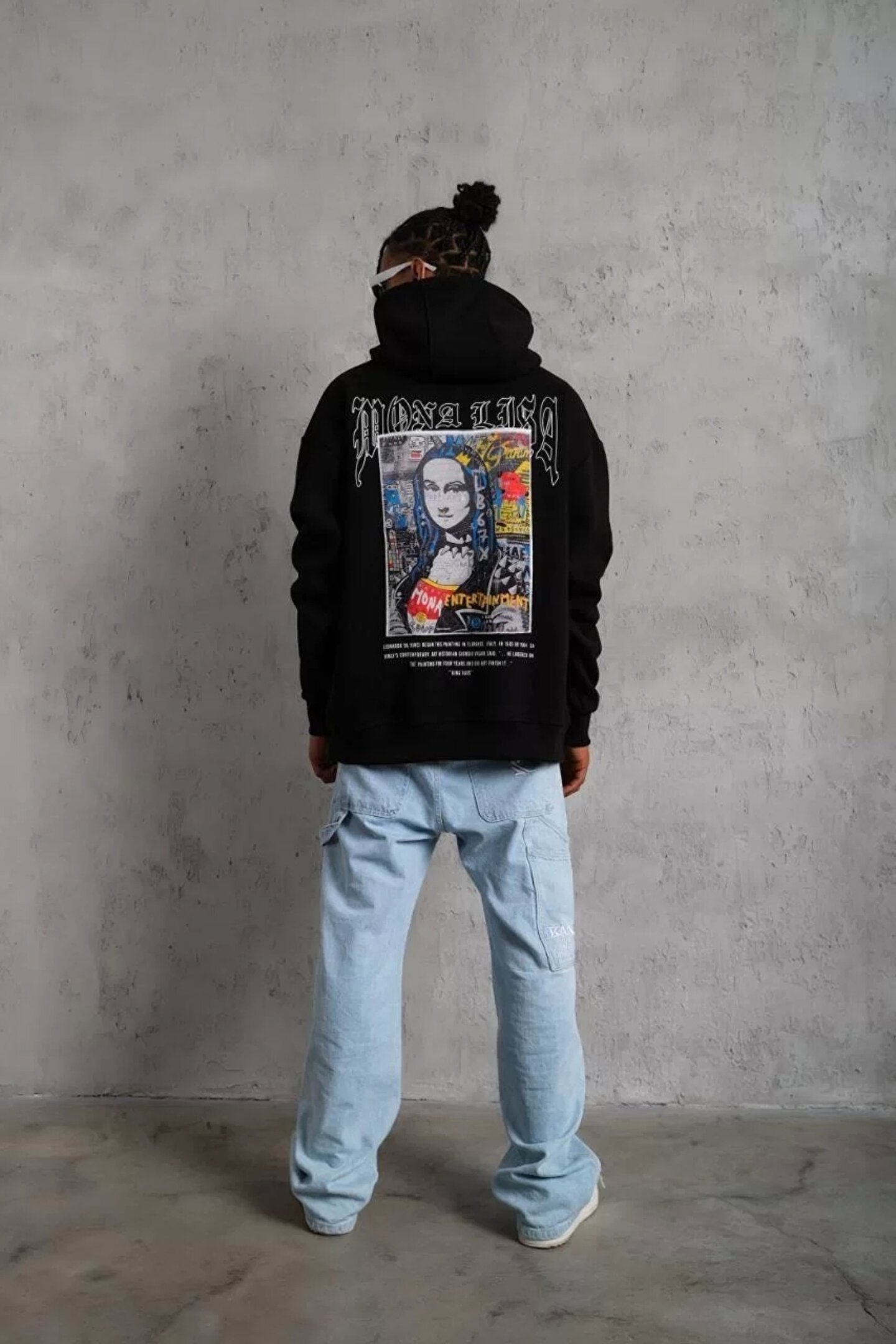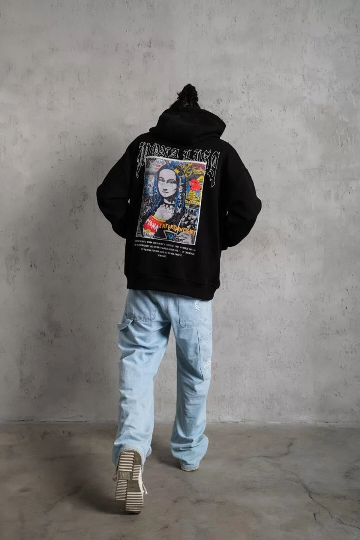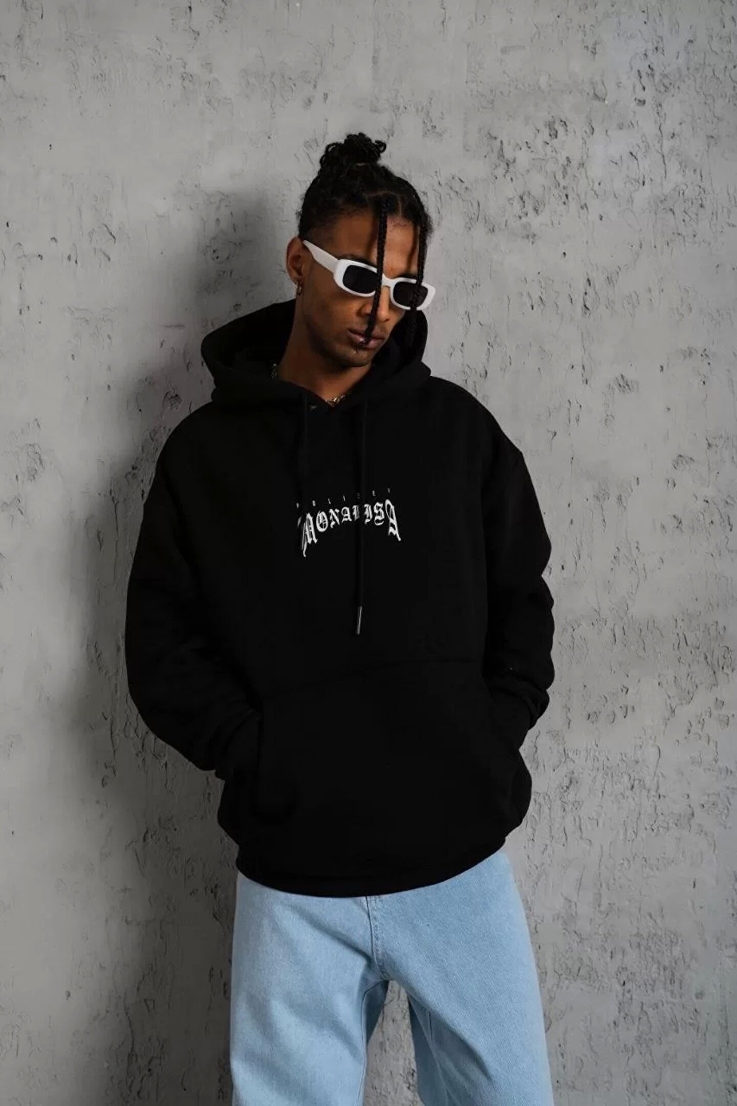 modamtn Erkek Baskılı Kapüşonlu ve Kanguru Cepli Sweat - Siyah
