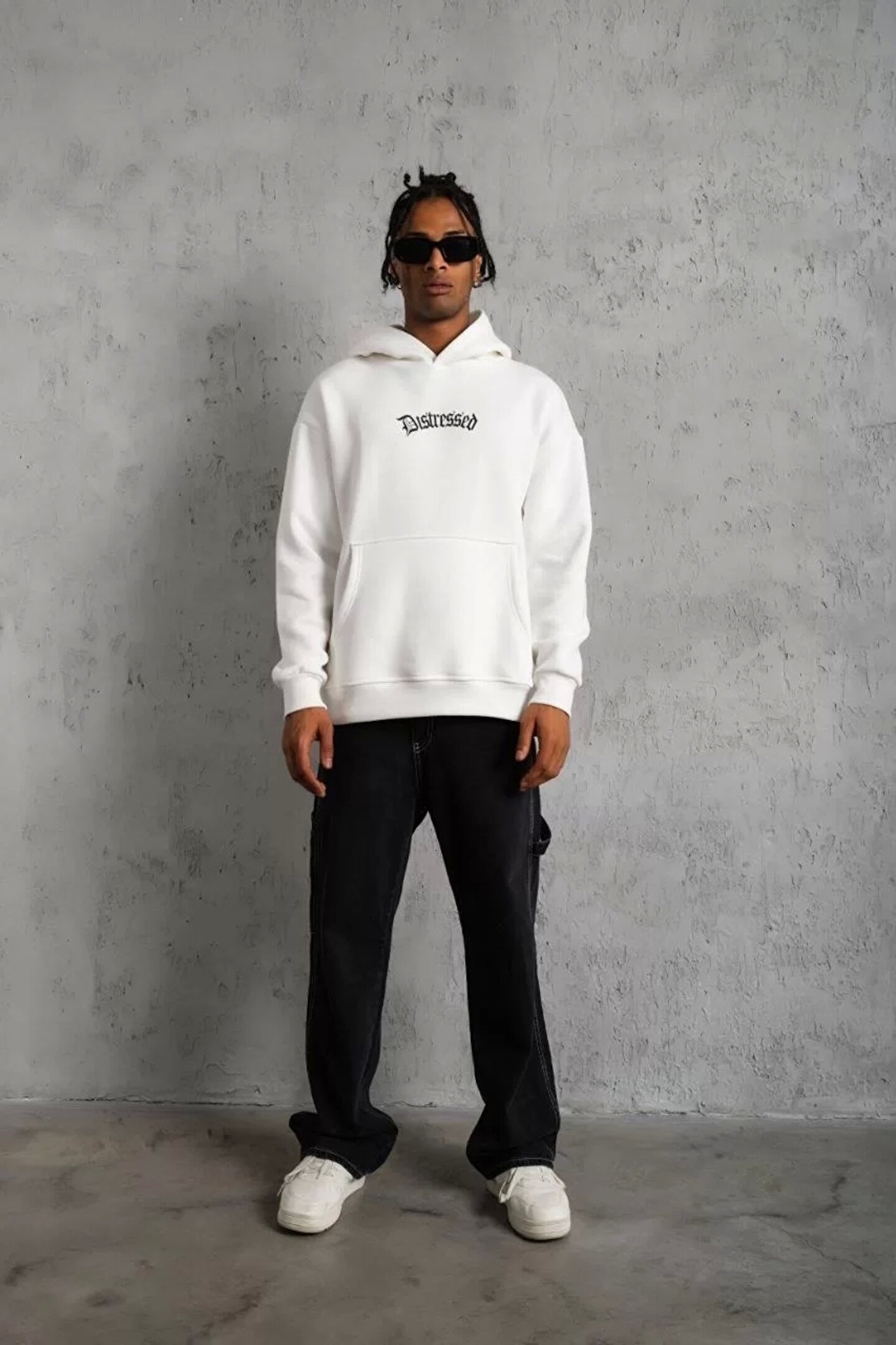modamtn Erkek Üç İplik Baskılı Kapüşonlu Sweat - Beyaz