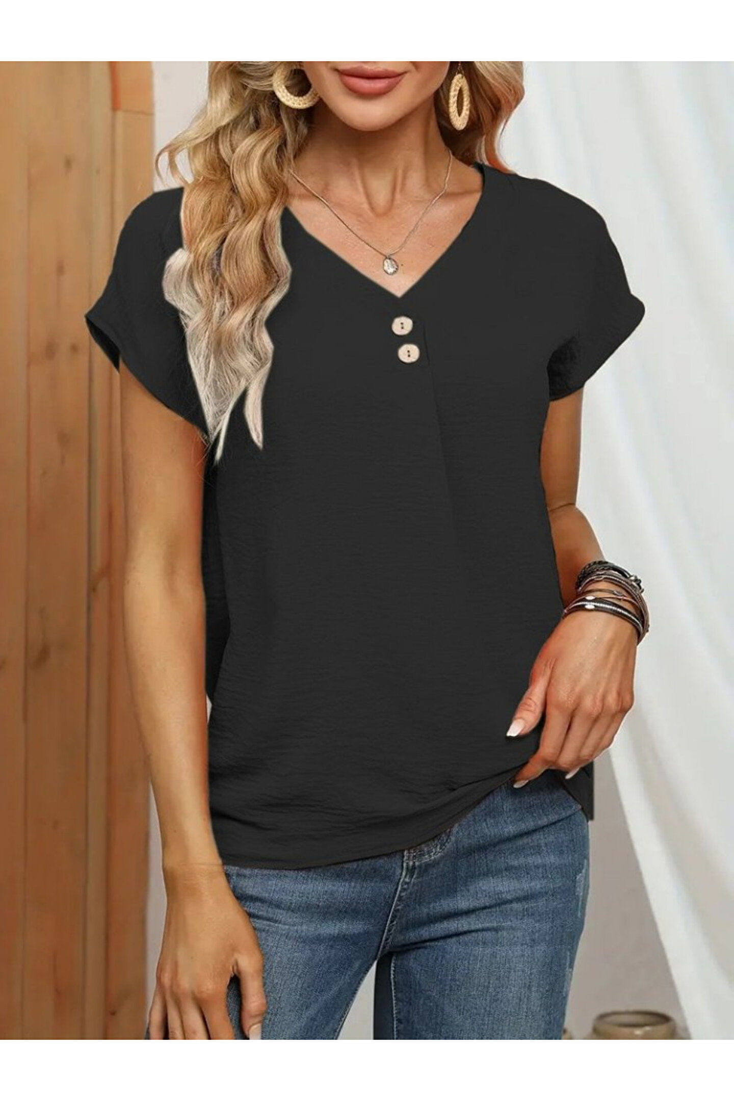 modamtn eyesof Kadın Kısa Kollu önü Düğmeli V Yaka Aerobin Bluz