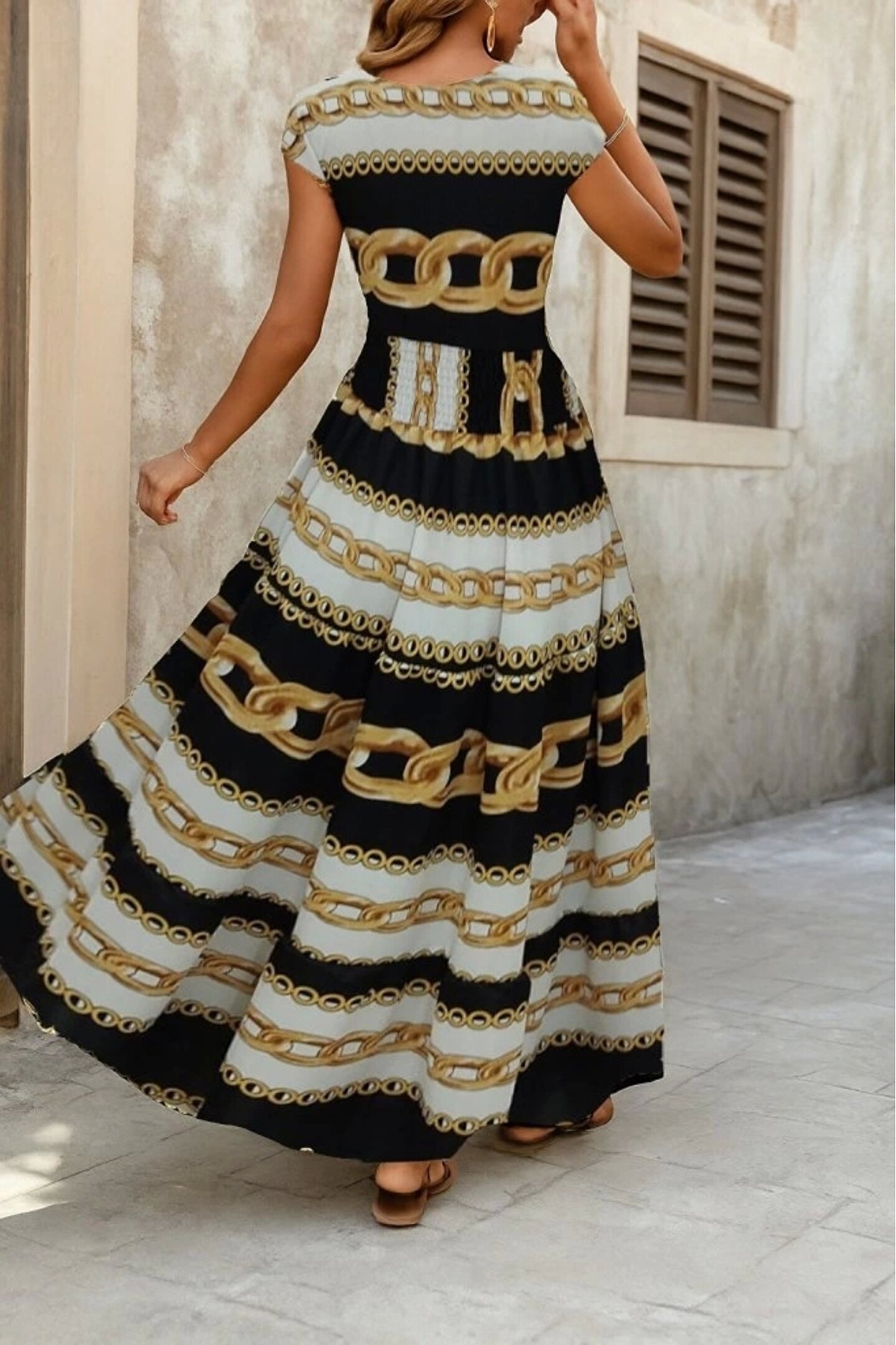 modamtn Kadın Kısa Kollu Kruvaze Yaka Beli Lastikli Süprem Maksi Boy Elbise