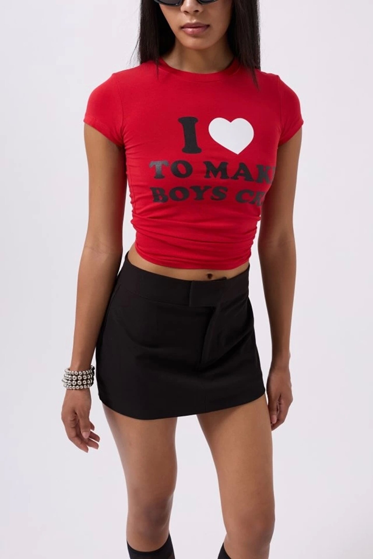 modamtn Nakış Detay Baskılı Crop T-Shirt