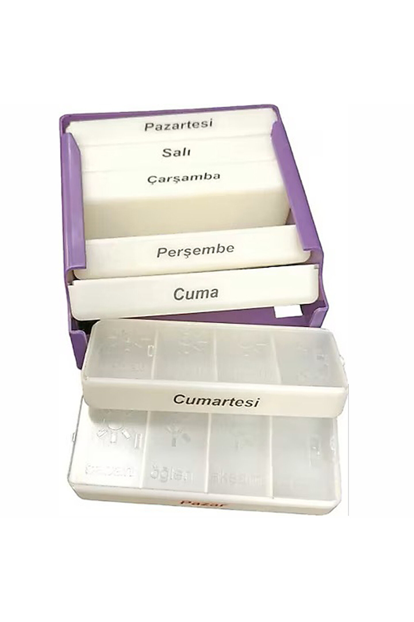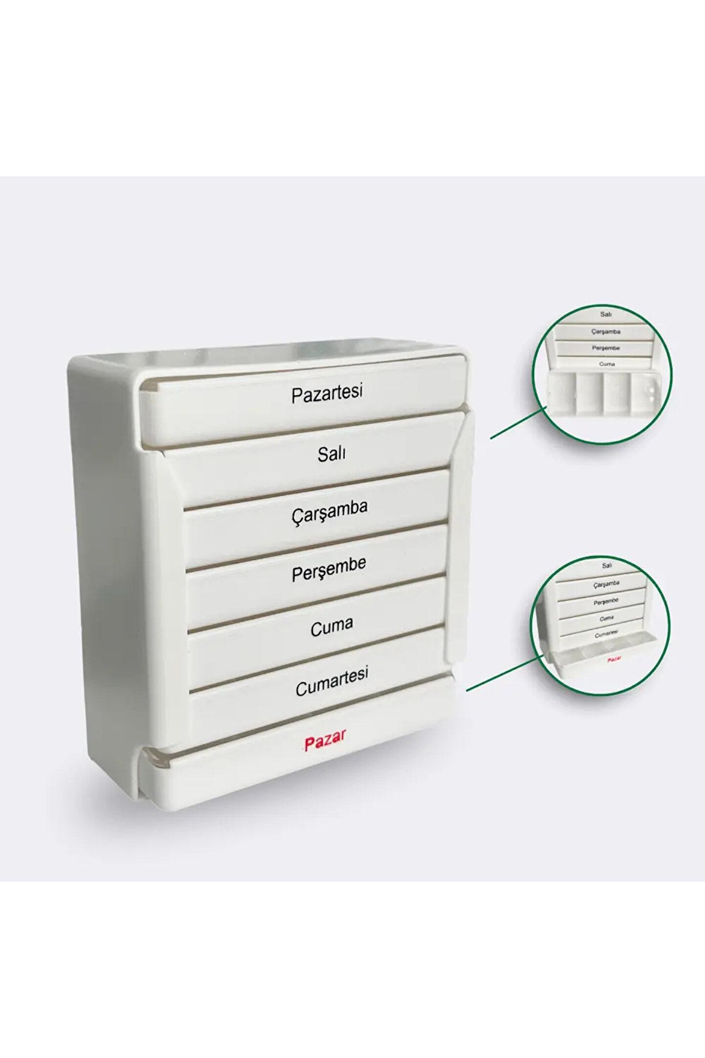 Her bölme, birçok farklıtürde hap ve tabletinizi rahatlıkla saklayabilecek kadar geniş.; Kolay Kullanım: Raylı sistemi ve basitaçılış tasarımıyla kullanımı son derece kolay.; Taşınabilirlik: Küçük ve hafif yapısı,seyahatlerde veya iş yerinde kullanım için idealdir.; Dayanıklı Malzeme: Kaliteli plastik malzemeden üretilmiş, uzun süreli kullanım için dayanıklı.; Neden Organize Sağlık Haftalık- Günlük İlaçKutusu? Sağlık Kontrolü: İlaçlarınızı düzenli olarak almanıza yardımcı olur, sağlık takibinizikolaylaştırır.; Güvenlik: Raylı kapakları sayesindeilaçlarınızın yanlış ellere geçmesini engeller.; Ürün hazne kapakları sert vedayanıklı malzemeden üretilmiştir.; Açılış ve kapanışında güç uygulanması gerekmezbu özelliği sayesinde taşıma esnasında açılmaz, uzun süreli ve güvenilirkullanım sağlar.; Zaman Kazandırır: Her günilaçlarınızı düzenlemek için harcadığınız zamanı azaltır, hayatınızı dahaverimli hale getirir.; Organize Sağlık Haftalık ve Günlük İlaç Kutusu ile sağlığınızı önplanda tutun ve her gününüzü daha düzenli ve kontrol altında geçirin!Hayatınızı kolaylaştıran bu pratik çözümü bugün edinin.;