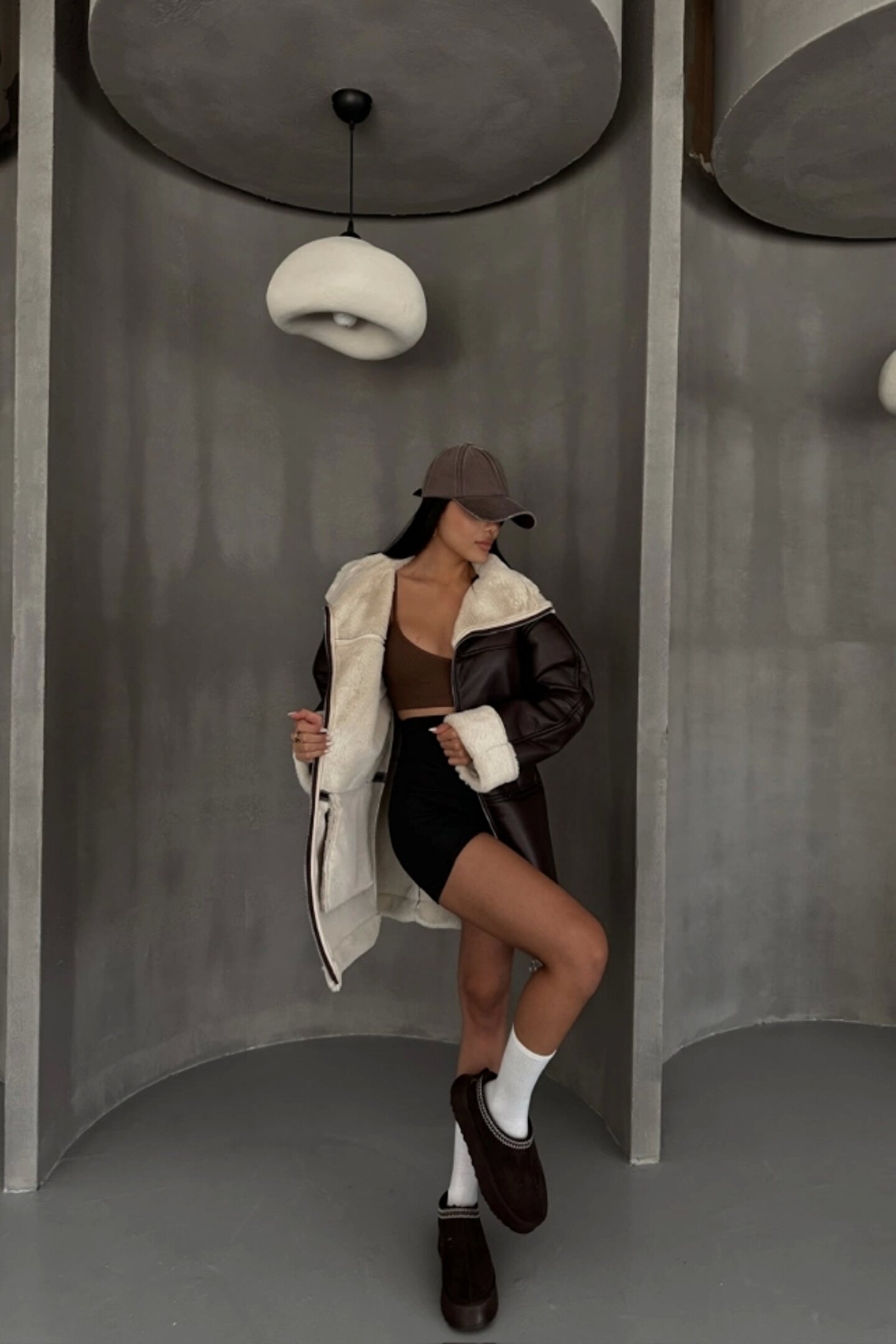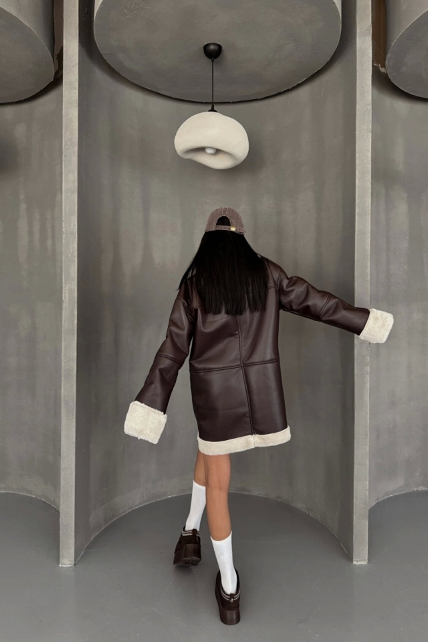 Modayakamoz DERİ MONT KOL VE YAKA PELUŞ KAPAKSIZ CEP DETAYLI - Kahverengi